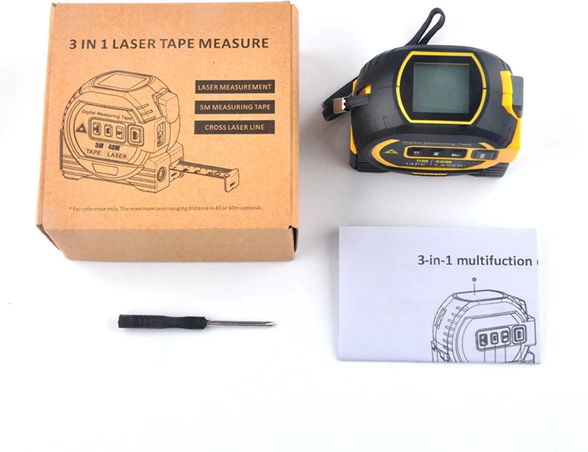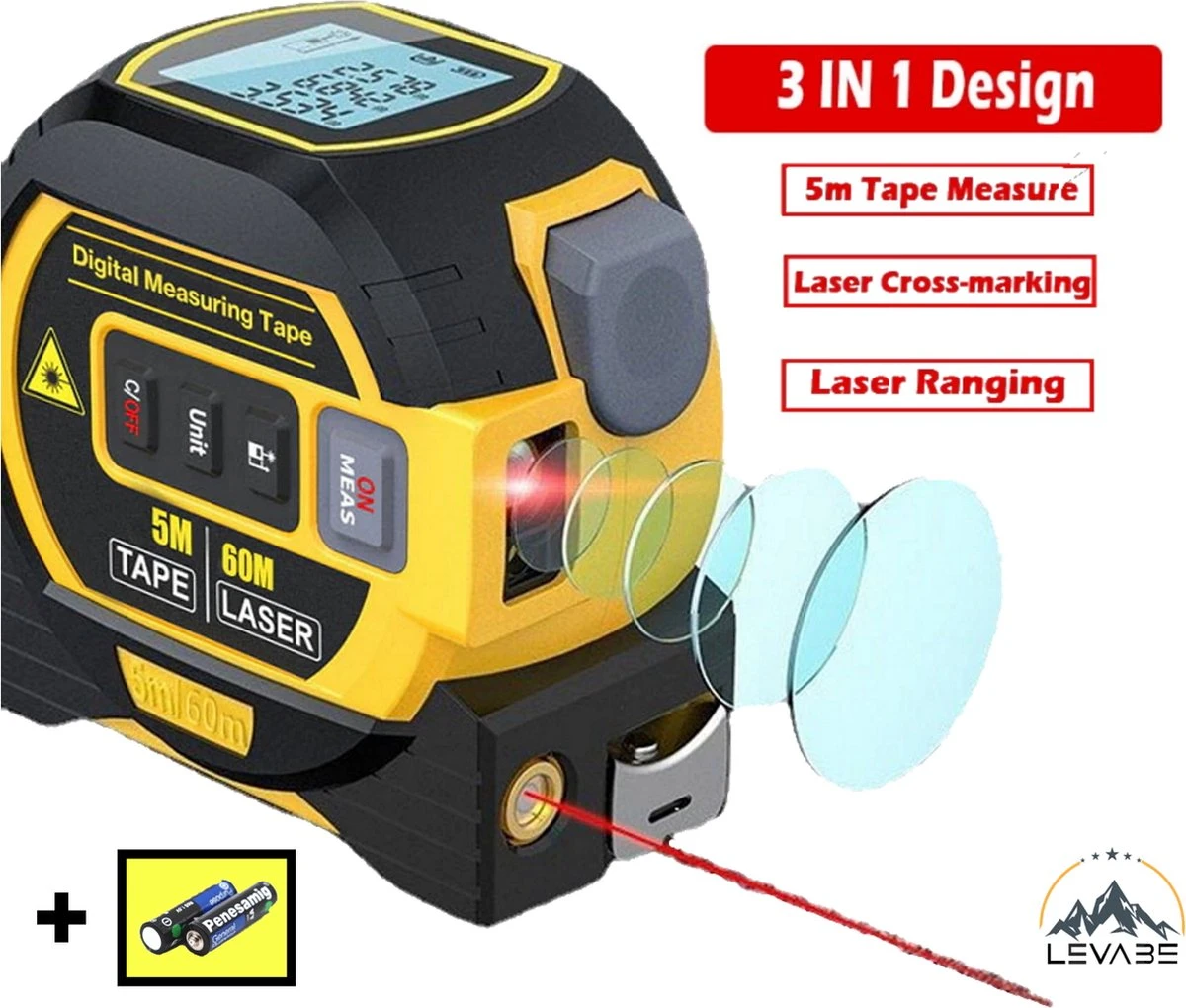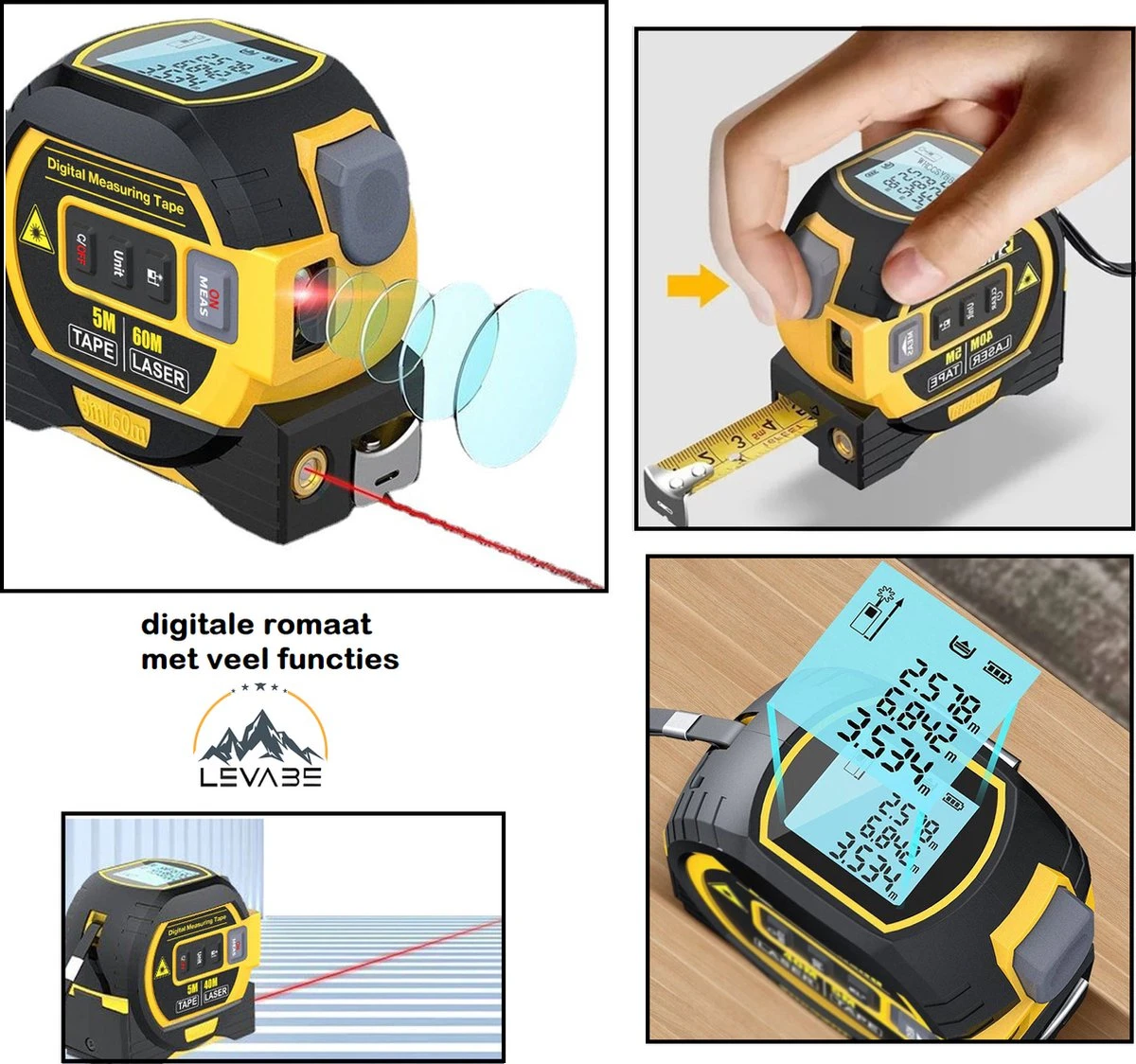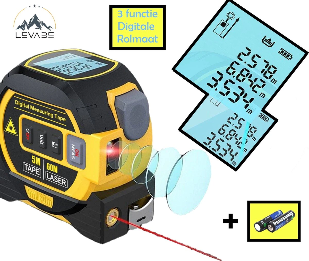 Deze 3 in-1 afstandsmeter van Levabe is de ideale digitale rolmaat en laser meter in 1. De afstandsmeter is gemakkelijk te bedienen en heeft een bereik tot 40 meter. Wil je zowel op lange als korte afstand meten? Dankzij het meetlint kunt u ook korte afstanden meten tot 5 meter ver en hoef je geen twee verschillende meters bij je te hebben. Dankzij de meegeleverde clip is de afstandsmeter gemakkelijk te bevestigen aan de riem van je broek. Zo raak je deze afstandsmeter dus nooit meer kwijt!