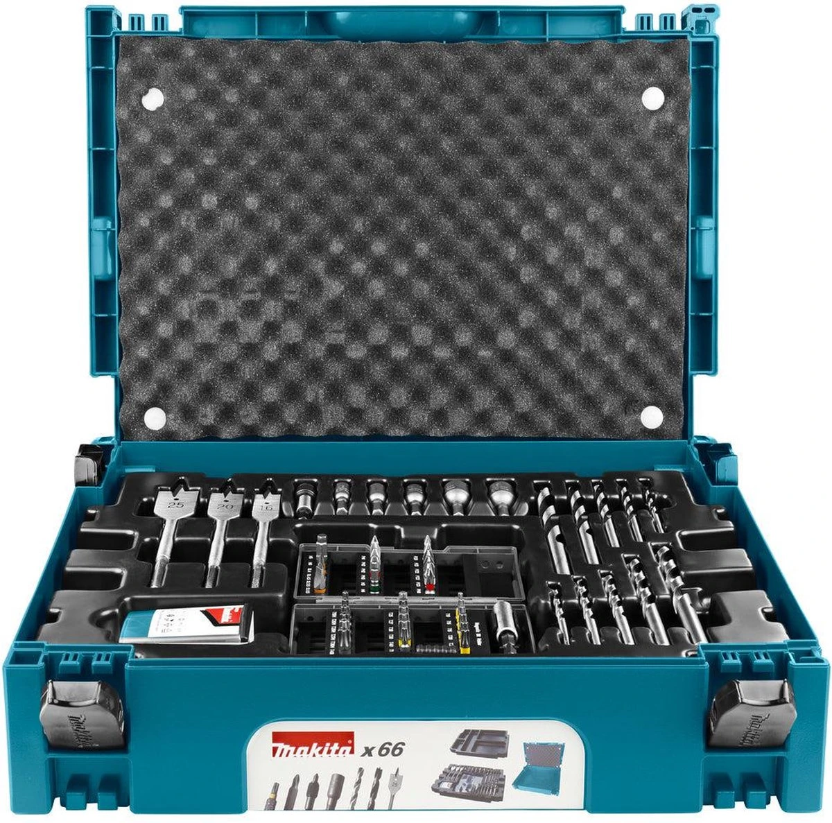 66-delige set bestaande uit de meest gebruikte maten boren en bits voor de binnen en buitenafwerking.