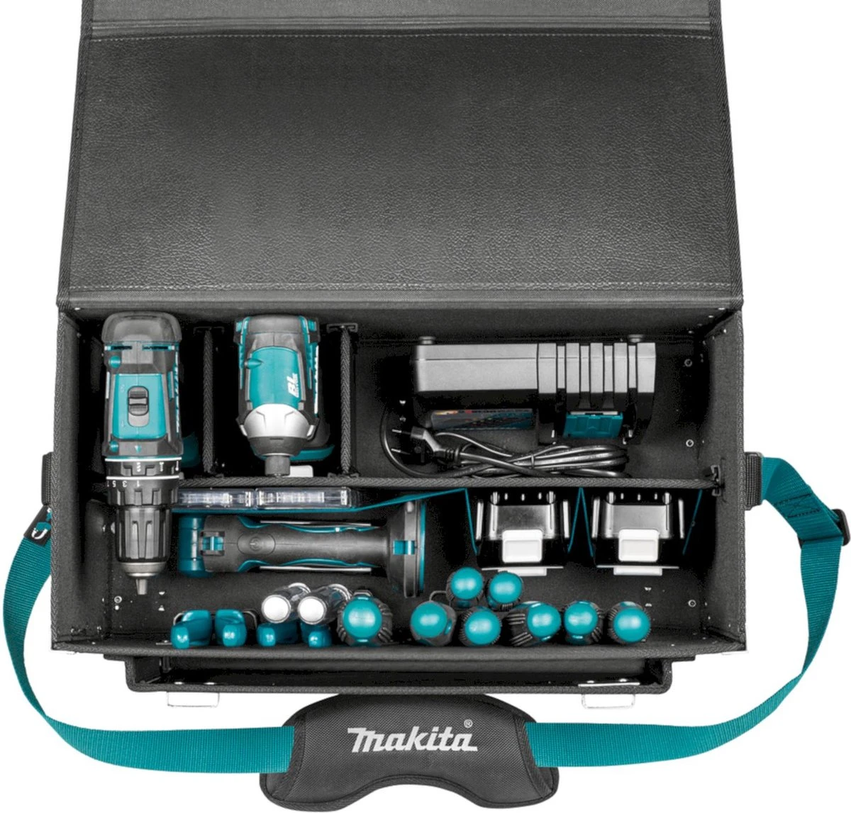 - Er is voldoende ruimte voor 2 boor/(slag) schroefmachines, accu’s en een oplader, en 20 stuks handgereedschap.