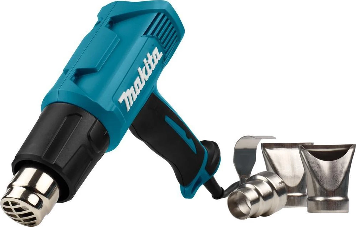 Deze maand (oktober 2019) introduceert Makita nieuwe heteluchtpistolen. Een heteluchtpistool is een breed inzetbare machine en wordt nu zelfs standaard geleverd met diverse opzetstukken. Er zijn drie verschillende uitvoeringen van een eenvoudige met 2 standen tot een pistool met een digitaal display, 12 voorkeuzestanden en een instelbare temperatuurregeling in stappen van 5° C. * Eenvoudig heteluchtpistool met 2 standen temperatuurregeling en luchtverplaatsing. * Geschikt voor verf afbranden, verhitten en solderen. * Kan zelfstandig staan om af te koelen. .Makita HG5030K 230 V Heteluchtpistool
