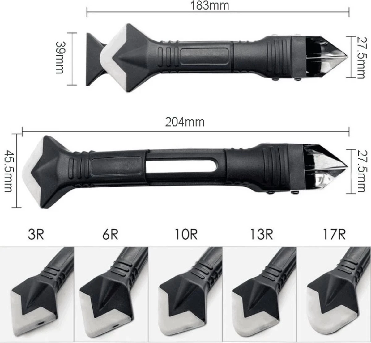 5x Afstrijkrubbers met verschillende hoeken (3R, 6R, 10R, 13R en 17R)