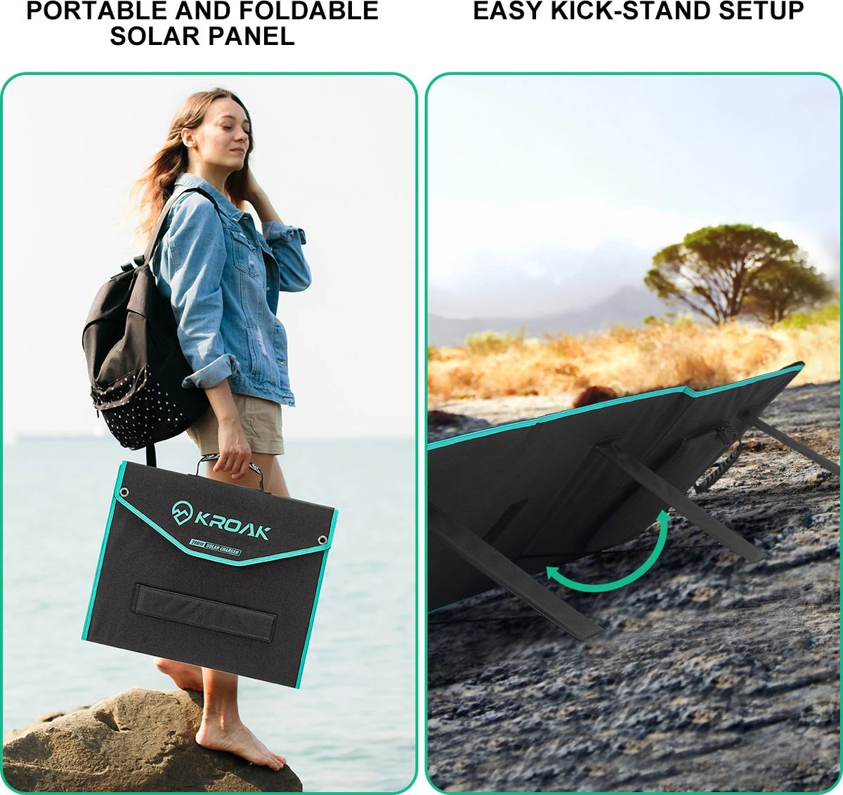 Wek jouw eigen energie op overal waar je bent! Met deze opvouwbare zonnepaneel set ben jij altijd en overal van stroom voorzien