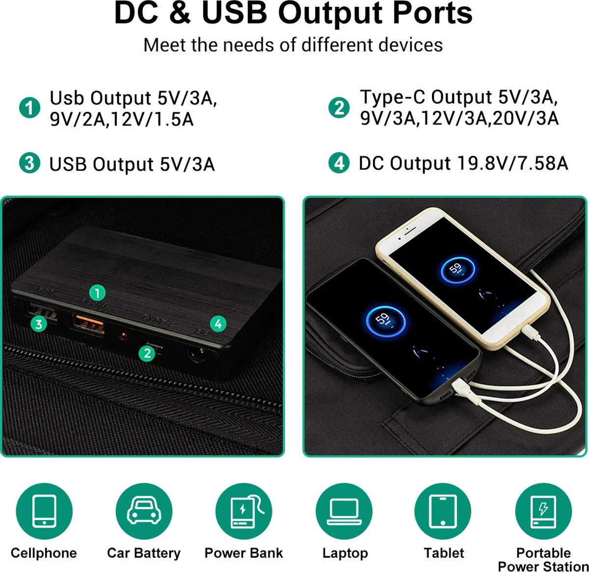 DC & USB 4 Uitgangspoorten: Voldoen aan de behoeften van verschillende apparaten. Ingebouwde snelkoppeling: Kan in serie of parallel worden aangesloten.