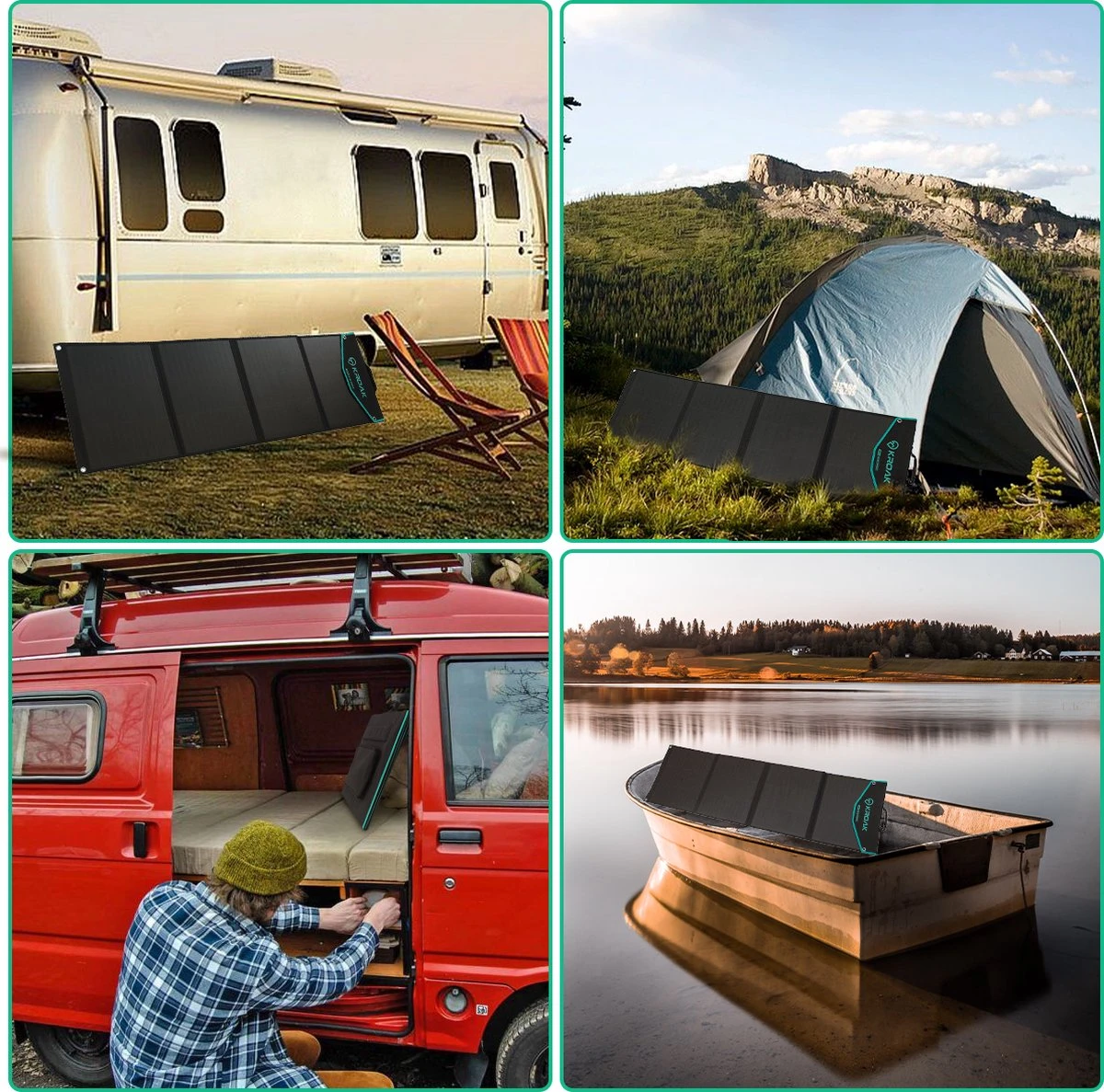 Erg handig op de camping, voor in de camper of op de boot of tijdens een lange wandeltocht. Dankzij het opvouwbare ontwerp kunt u het zonnepaneel gemakkelijk meenemen voor onderweg. Het zonnepaneel is weerbestendig en gemaakt van robuuste, duurzame materialen. Maak uw buitenavontuur een beetje aangenamer!