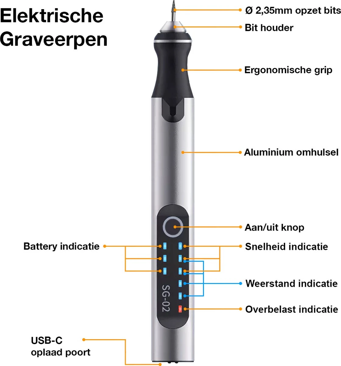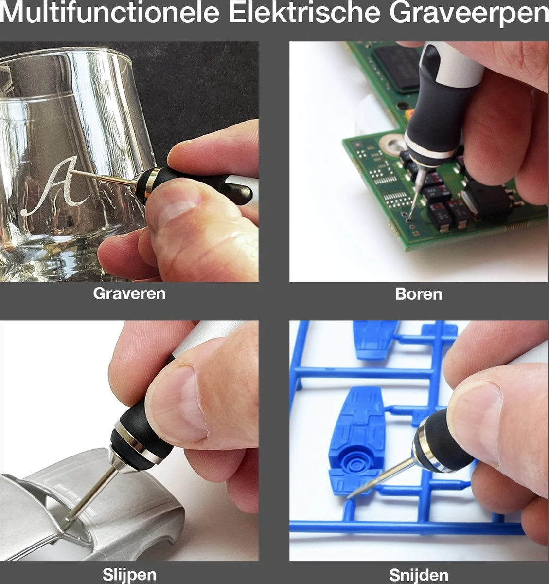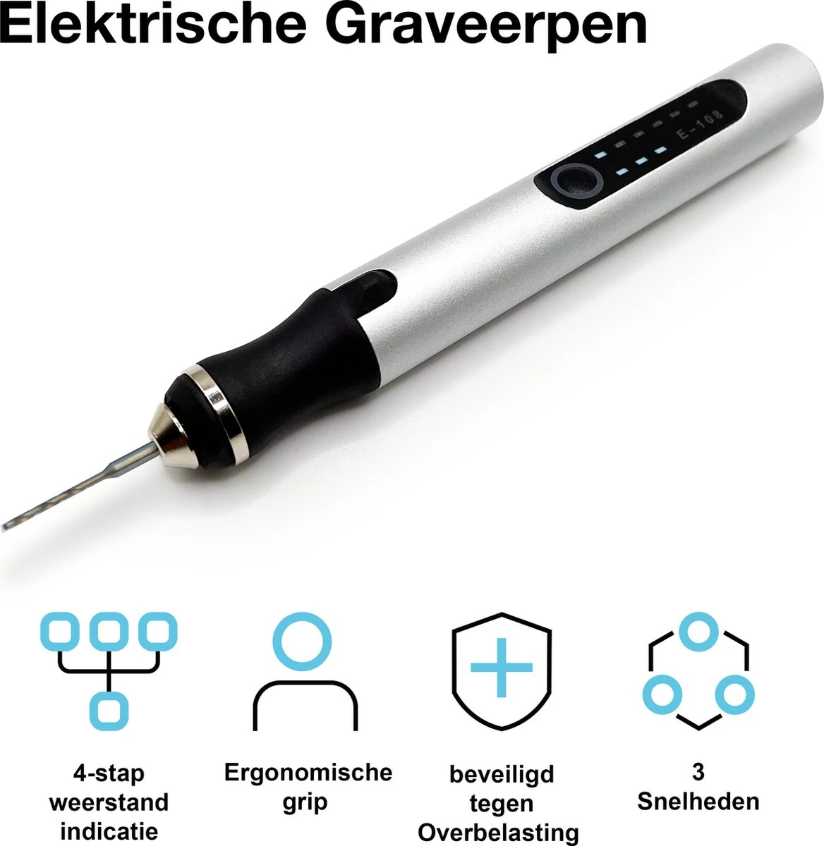 De graveerpen heeft een premium motor die het graveren makkelijk en comfortabel maakt. Let op: dit is een precisie instrument, dus niet bedoeld voor zware toepassingen.