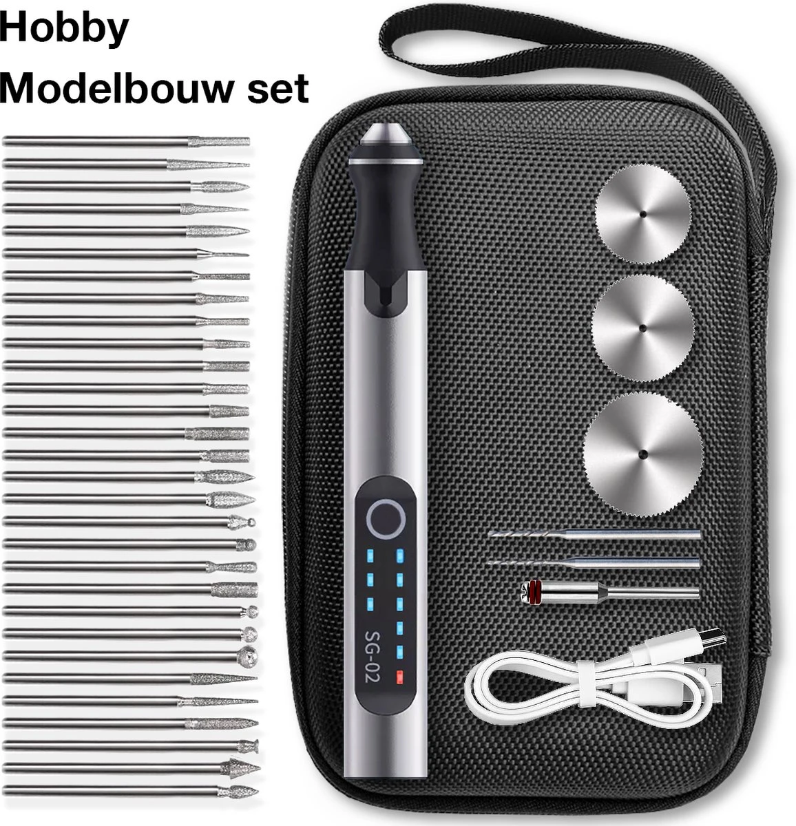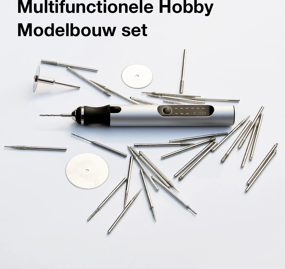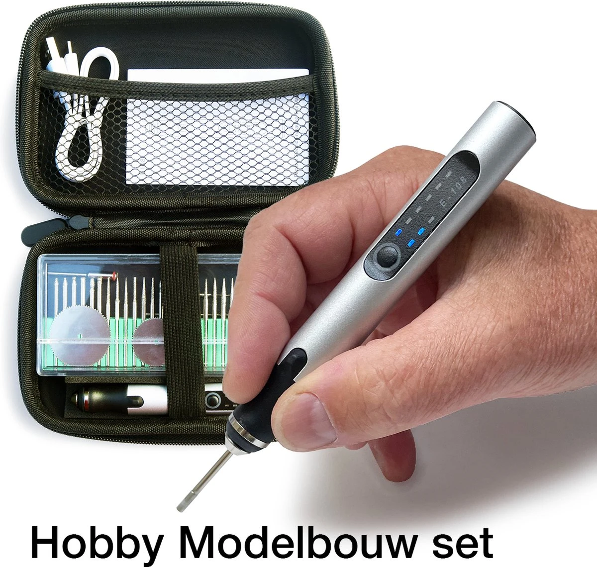Deze handige modelbouw set kan als elektrische graveermachine, polijstgereedschap of een klein draaigereedschap worden gebruikt, waarmee je in enkele seconden bijna elk oppervlak kunt bewerken of decoreren, zoals metaal, kunststof, glas, keramiek, hout, leer, steen en nog veel meer. Het graveergereedschap is eenvoudig te bedienen, geschikt voor beginners en ideaal voor doe-het-zelfcreaties, knutselen, lichte projecten (bijvoorbeeld modelbouw) etc.