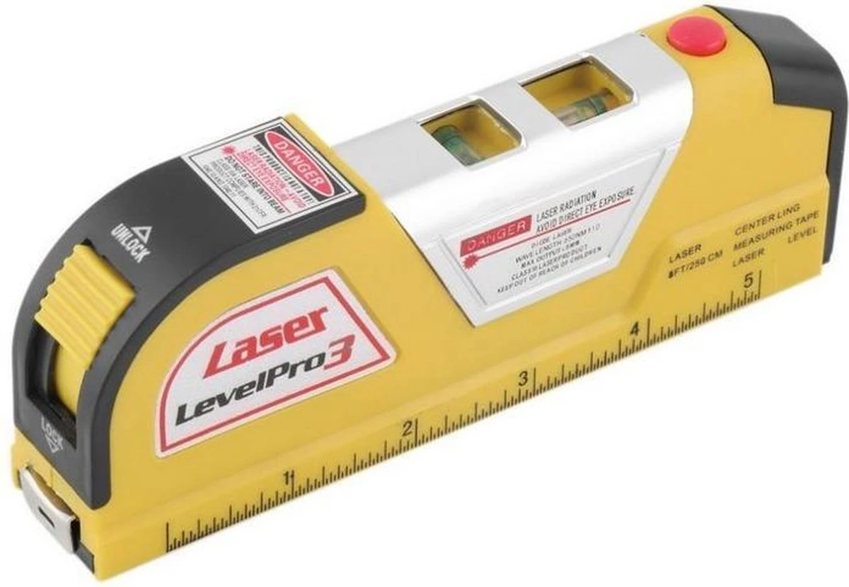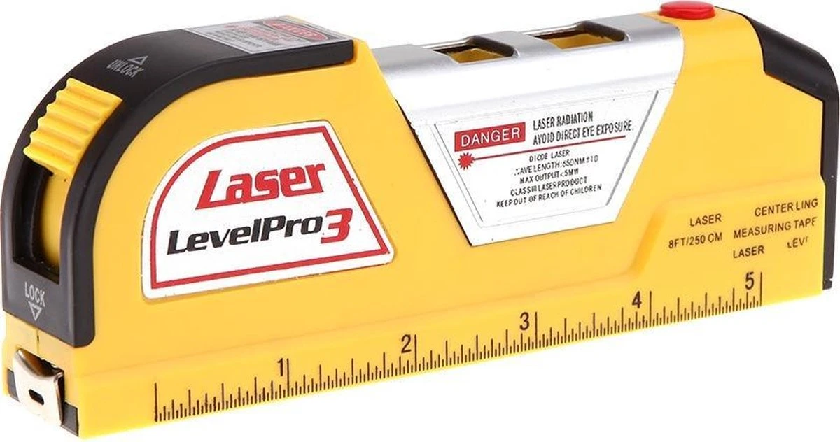 Meten is weten! Dat weet elke goede timmerman en met deze laserwaterpas verandert iedere klusser in een ware pro! Met de laserwaterpas kun je met behulp van de laser op grote afstanden op de juiste plek afmeten en aftekenen. Ideaal voor klussen met een hoge precisie zoals het leggen van tegels, ophangplanken, fotolijsten enz! Aan de achterkant kun je een meetlint vinden van 250 cm lang. Kortom alle tools die je nodig hebt om tijdens het klussen al je afmetingen en aftekeningen goed te hebben. Ook handig voor op vakantie met de caravan.