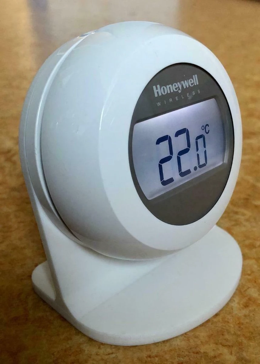 Als u een Draadloze Honeywell Round thermostaat niet wil of kan ophangen, biedt deze tafel-standaard een elegante oplossing.
