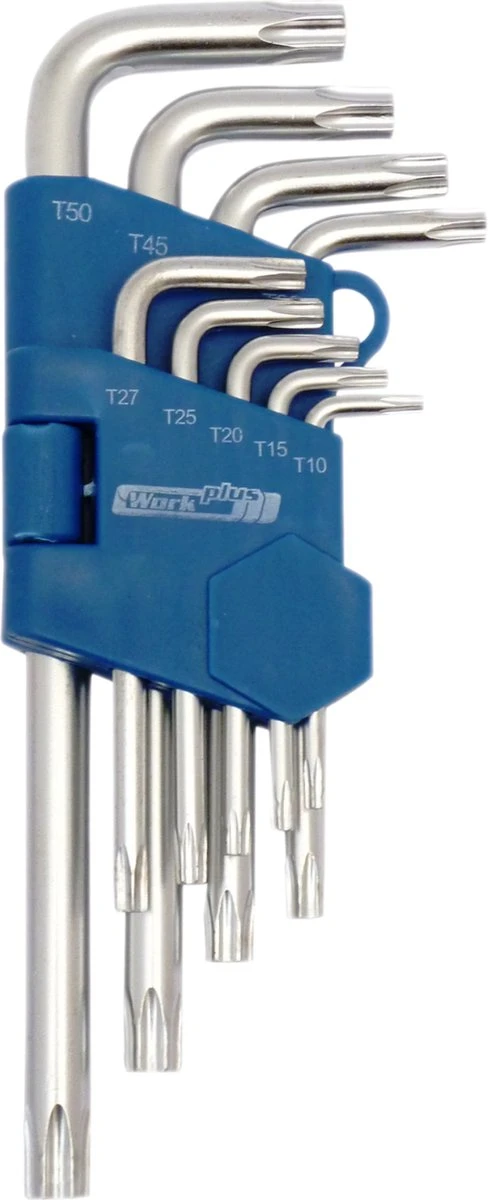 Materiaal: chrome – vanadium staal. Kleur: zilver. Maten Torx-sleutels: T50, T45, T40, T30, T27, T25, T20, T15 en T10. Klusbenodigdheden torxsleutels.