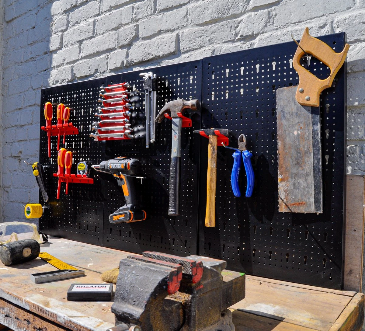 De gereedschapspanelen zijn geperforeerd om zo de 17 bijgeleverde ophang accessoires makkelijk te bevestigen, af te halen en te plaatsen waar en zoals u wenst.