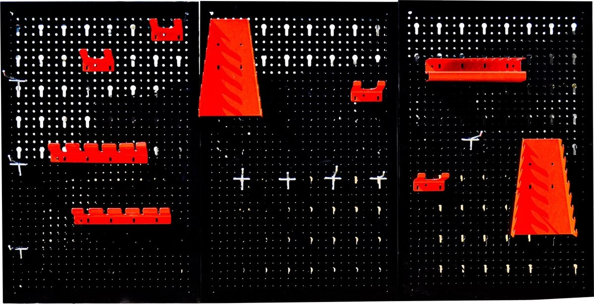 Stel orde op zaken in uw werkplaats met dit hoog kwalitatieve opbergsysteem, bestaande uit drie, uit metaal vervaardigde, panelen.