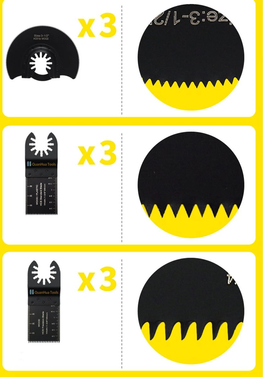 - 3 x 34 mm zaagblad (korte tanden)