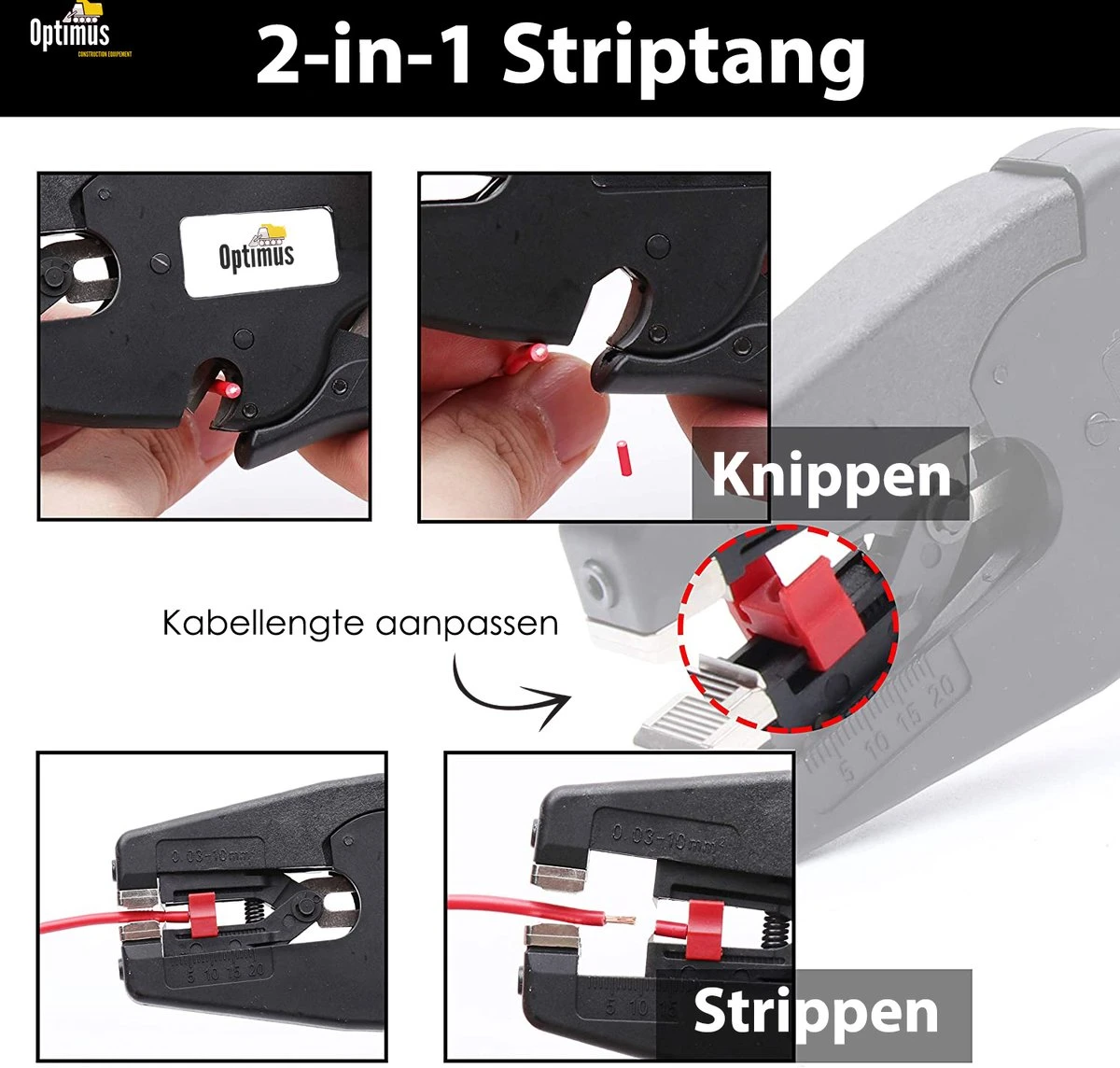Moe van het kapot knippen van kabels? Dan is de automatische 2-in-1 Striptang van Optimus de perfecte oplossing!