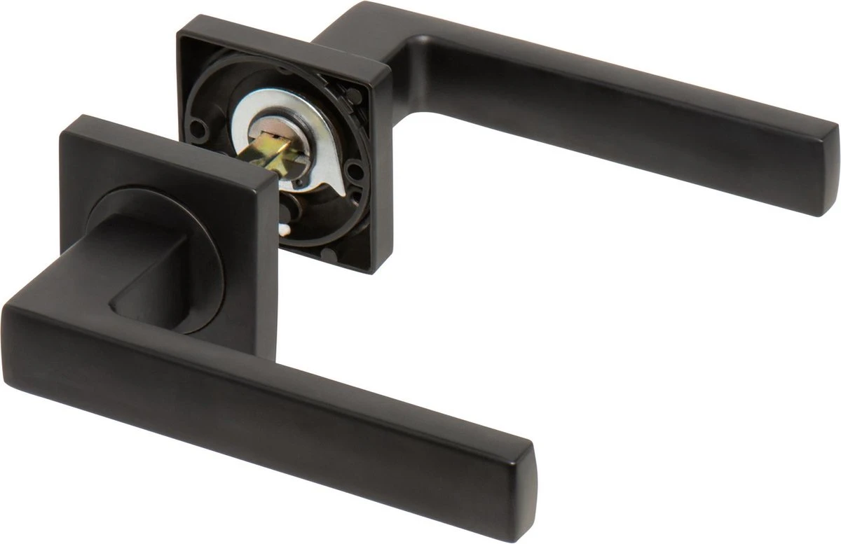 Imperia – Mat zwarte deurklink op vierkante rozet. Deze industriële deurkruk van het merk Ostium is met veel zorg samengesteld. De premium kwaliteit van de deurklinken zullen een hoge toegevoegde waarde hebben op de ‘look’ in huis. De deurkrukken zijn geschikt voor alle binnendeuren en kunnen dus gecombineerd worden voor bijvoorbeeld de huis- woon- slaap- of badkamerdeuren.