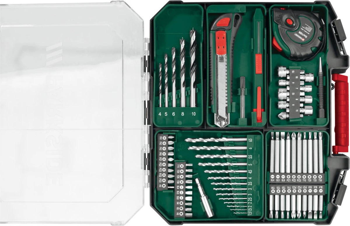 Inclusief: 2 accu’s, 1 oplader en 73-delige toebehorenset