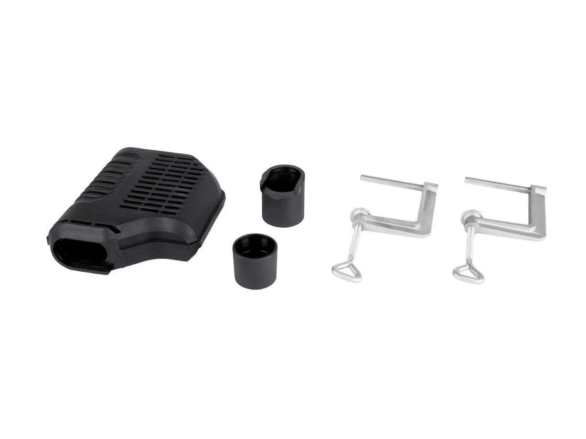 Inclusief 1x stofopvangbox, 1x adapter met verloopstuk voor externe stofafzuiging, 2x schroefklemmen, 1x schuurband (korrel 80)