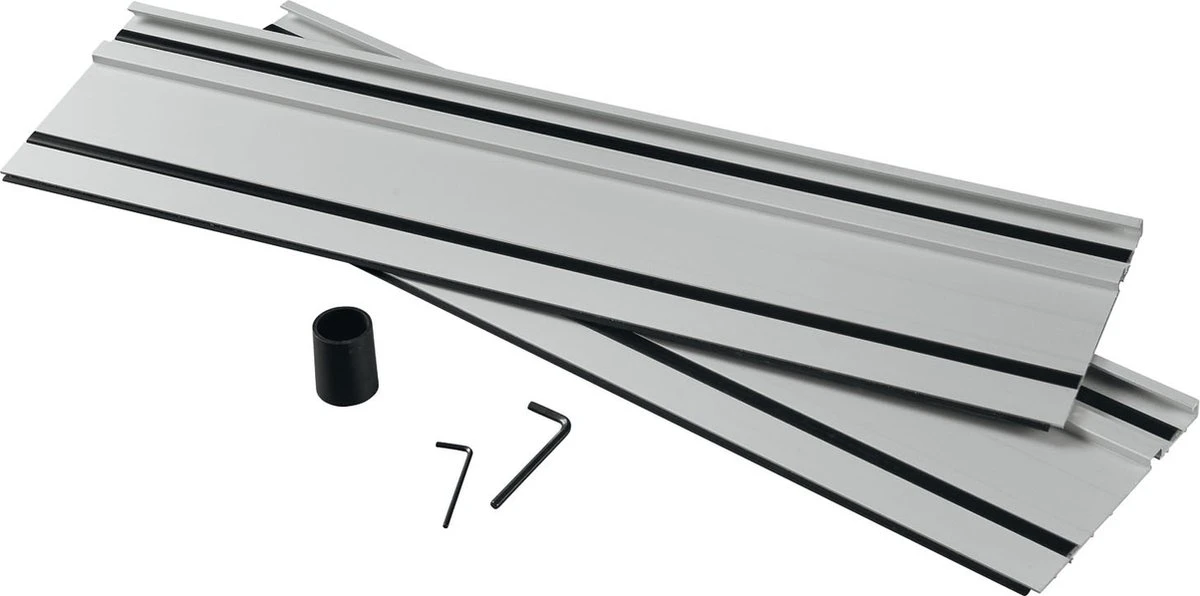 Inclusief 2-delige geleiderails met verbindingselement, stofafzuigadapter, 2 inbussleutels en 1 spouwmes
