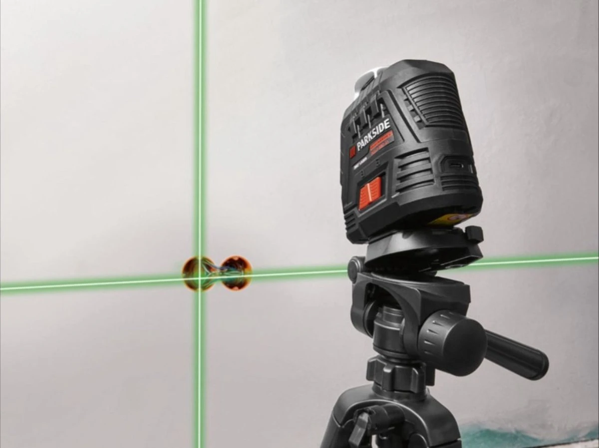 - 360°-roterende laser met horizontale projectie rondom en verticaal kruisende laserlijn