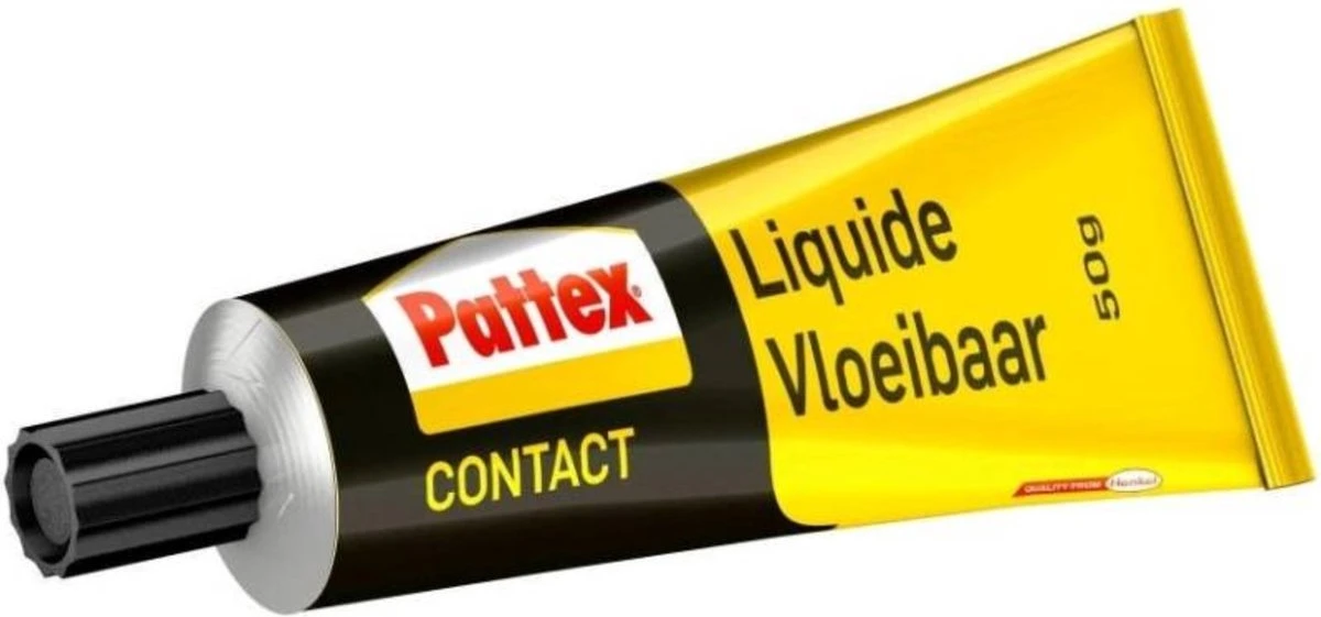 Pattex Vloeibaar – Deze superlijm met hoge vocht & hitte bestendigheid is geschikt voor bijna alle materialen. Pattex Vloeibaar is de “moeder” van het Pattex contactlijmen assortiment. Pattex Vloeibaar heeft een snelle aanvangshechting met hoge lijmkracht, is makkelijk aan te brengen en is ideaal voor het verlijmen van verschillende oppervlakken of fineer, ook op moeilijk bereikbare plaatsen.