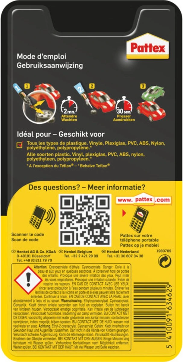 Pattex Secondelijm Plastics is ideaal voor doe-het-zelvers die op zoek zijn naar een lijm die snelle, schone en effectieve verlijmingen mogelijk maakt. Deze transparante secondelijm van Pattex hecht dankzij de extra sterke formule bijzonder goed op alle kunststof oppervlakken.Dit maakt de lijm ideaal voor het herstellen en verlijmen van kunststofvoorwerpen zoals speelgoed, spelletjes, autoaccessoires, kantoorbenodigdheden en computeronderdelen. De krachtige lijm droogt onmiddellijk en transparant op.