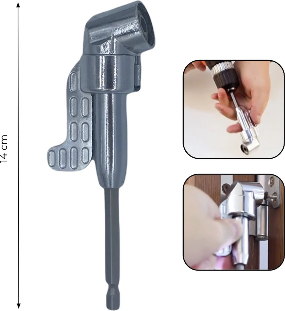 Handig om bijvoorbeeld een vijs met boormachine in te vijzen wanneer je bijna geen plaats hebt om rechtuit te werken.