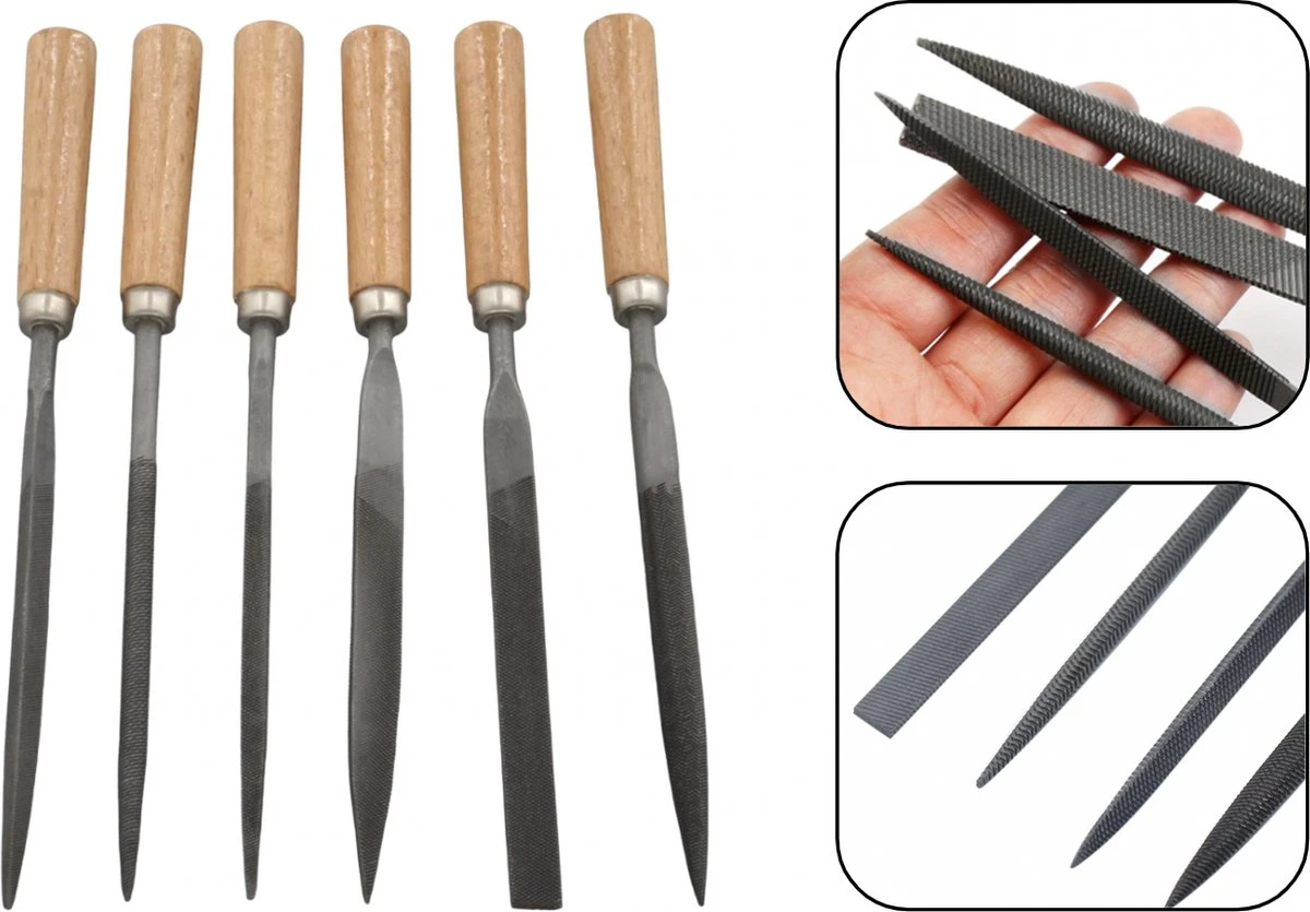- De vijlen hebben een houten handvat voor comfortabel gebruik