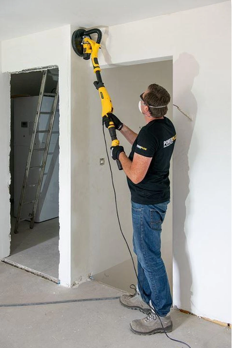 Met deze Powerplus langnekschuurmachine schuur je gipsplaat, plafonds en muren op een comfortabele en snelle manier. Je verwijdert er ook restjes verf, lijm en pleisterwerk mee. De schijfdiameter van deze schuurder is 215mm, wat hem geschikt maakt voor schuurpapier van 225mm.
