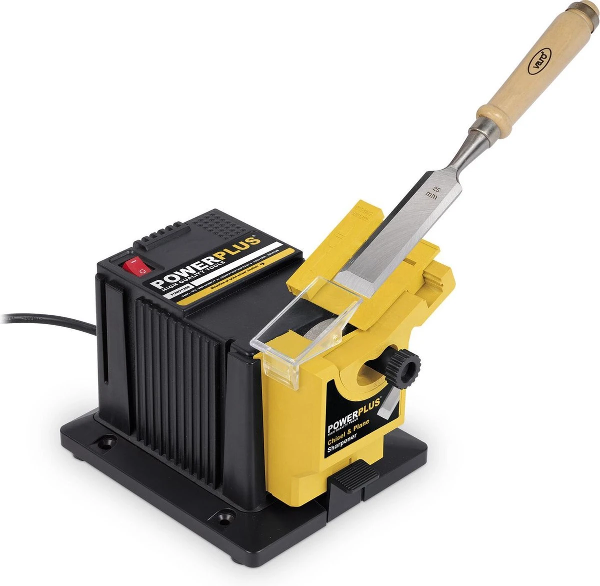 Deze 96 Watt krachtige multifunctionele slijper slijpt nauwkeurig onder de correcte hoek en herstelt de snijkanten van alle boren, messen, scharen, vlakke beitels en ander vlak snijgereedschap als nieuw.