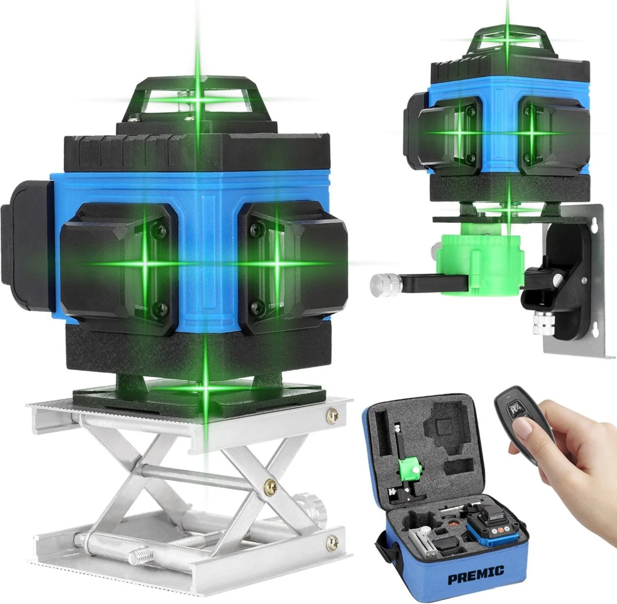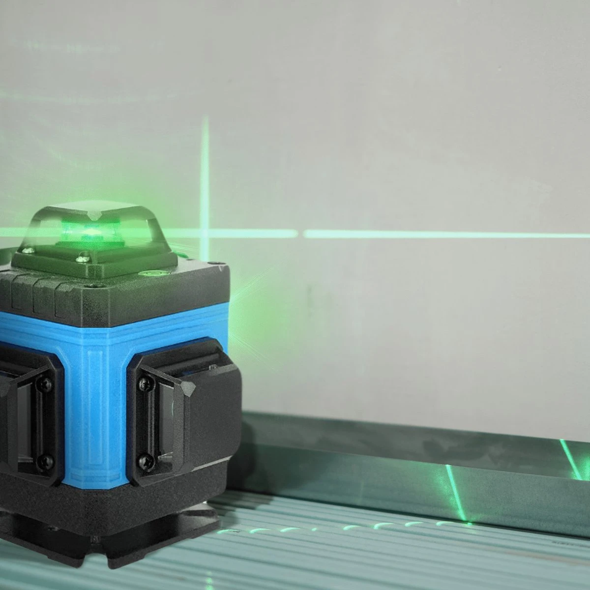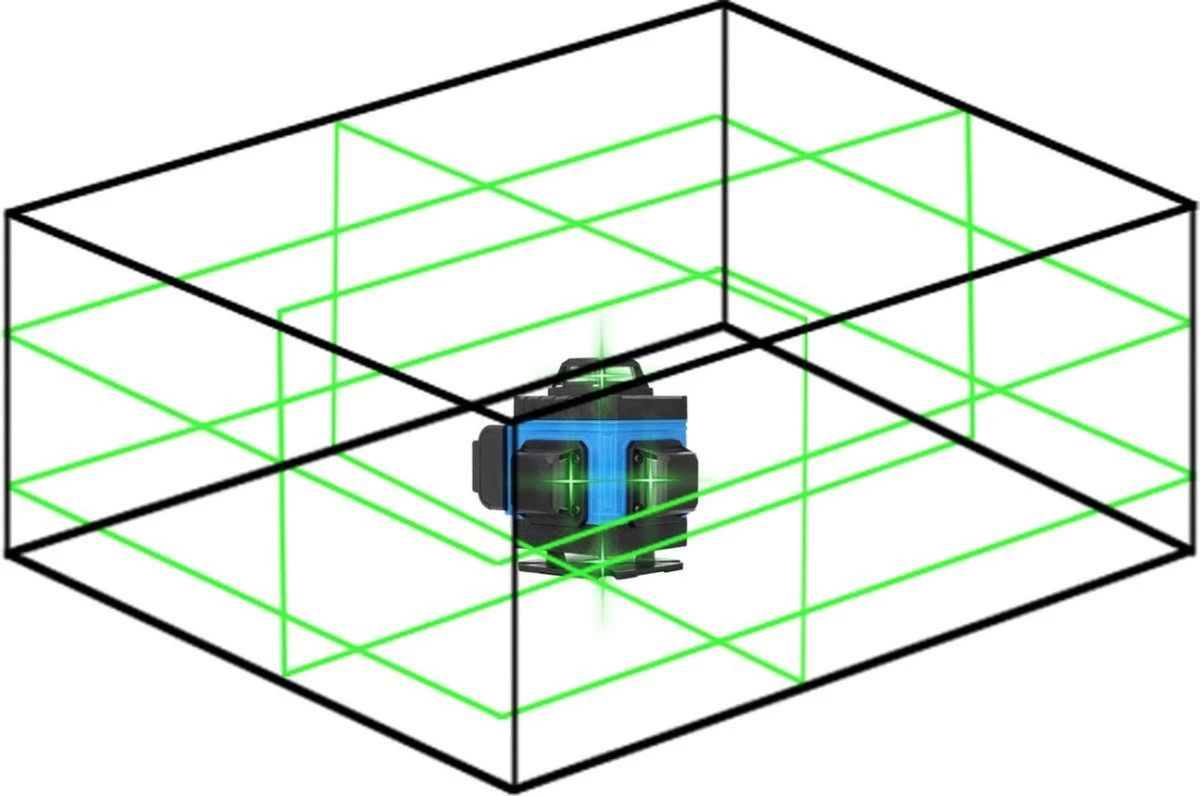 De nivellerende kruislijnlaser is 360° draaibaar, je kunt hem instellen zoals jij wilt. Hierdoor ben je ervan verzekerd dat de waterpas kruislijnlaser in alle ruimtes en op alle terreinen van pas komt. De kruislijnlaser geeft 4,8, 12 of 16 groene 4D laserlijnen en alle lijnen zijn over 360 graden goed te zien.