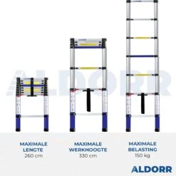 ALDORR Professional – Telescoopladder 5,20 Meter – Met Optigrip™ En Extra Diepe Treden