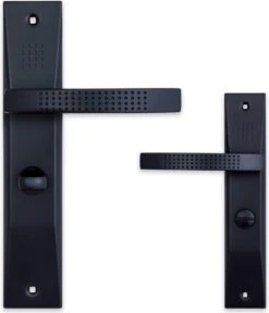Deurklink Met WC Slot – 72mm – Eliot Serie Op Schild – Mat Zwart – Complete Set