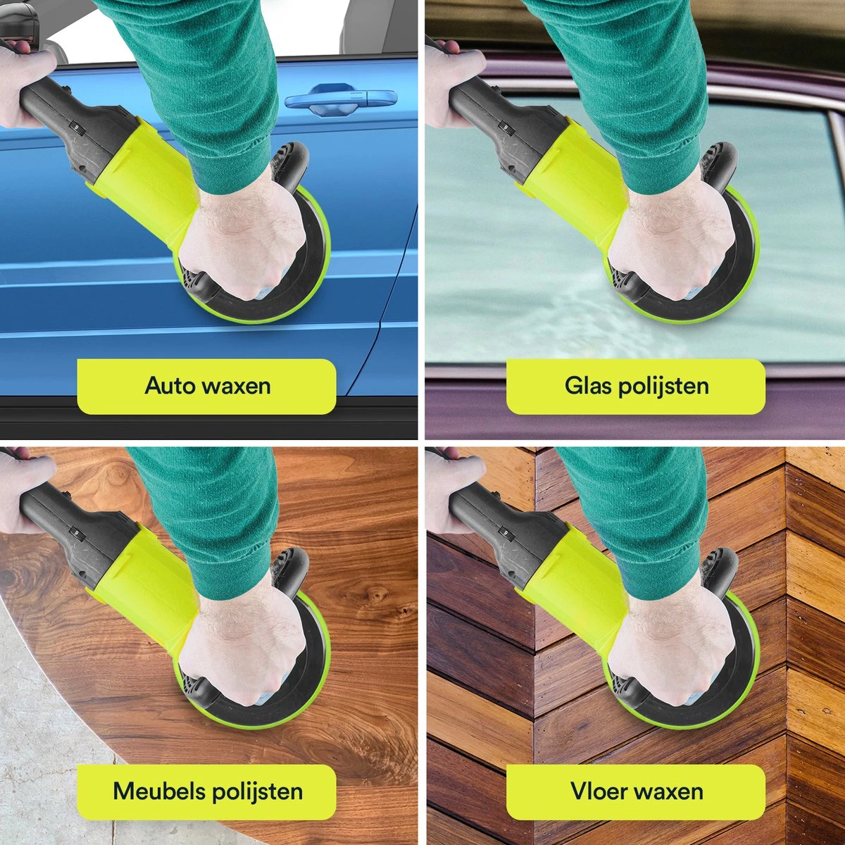 De krachtige polijstmachine kan worden ingesteld op 6 verschillende snelheden en is voorzien van een sterke motor van 1200W, hierdoor kan de machine zelfs de meest doffe en uitgeleefde laklagen weer laten glanzen en stralen. De hendel is afneembaar en beweegt soepel mee met jouw handbewegingen, waardoor je een comfortabele en stevige grip hebt en makkelijk te werk kan gaan.