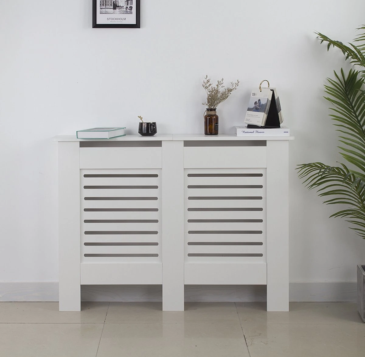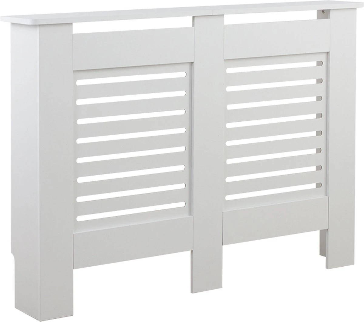 Maak van elke ruimte met nog open verwarmings radiatoren een elegante moderne en strakke ruimte door met deze ombouw de lelijke radiatoren te verbergen zonder de warmte te verliezen. Deze radiator ombouw heeft de afmeting van 112 cm breed x 82 cm hoog x 19 cm diep en is een mooie en zeer functionele en praktische oplossing met decoratieve mogelijkheden. Op de bovenste afdekplank van 19 cm breed kunt u bijvoorbeeld accessoires planten fotolijstjes of andere items plaatsen. De radiatorombouw heeft een modern ontwerp en past in elke ruimte van uw woning of bedrijskantoor. Levering inclusief montage instructie en benodigde onderdelen.
