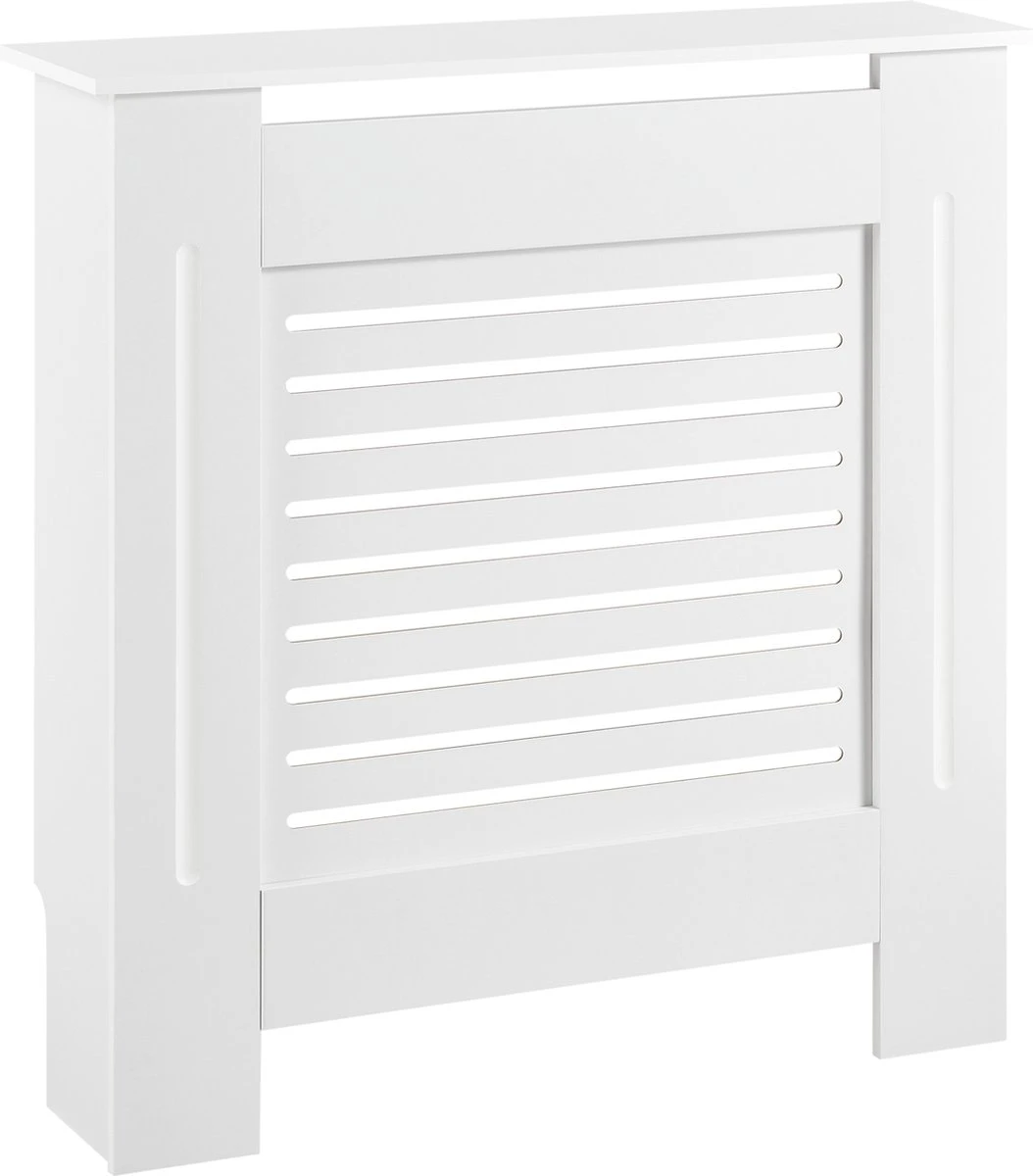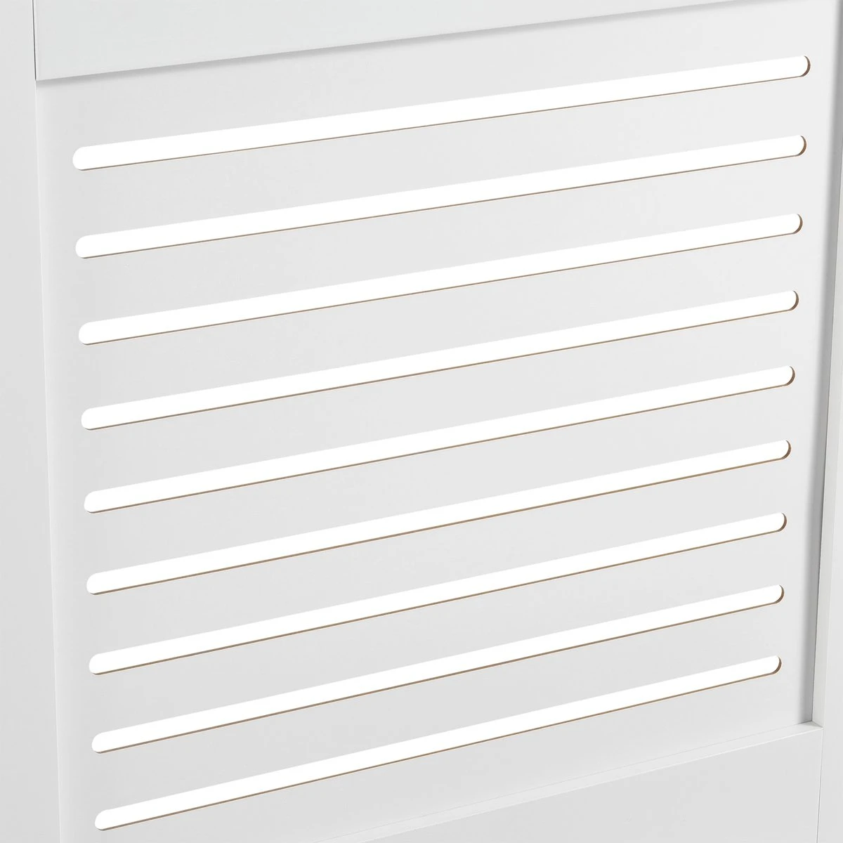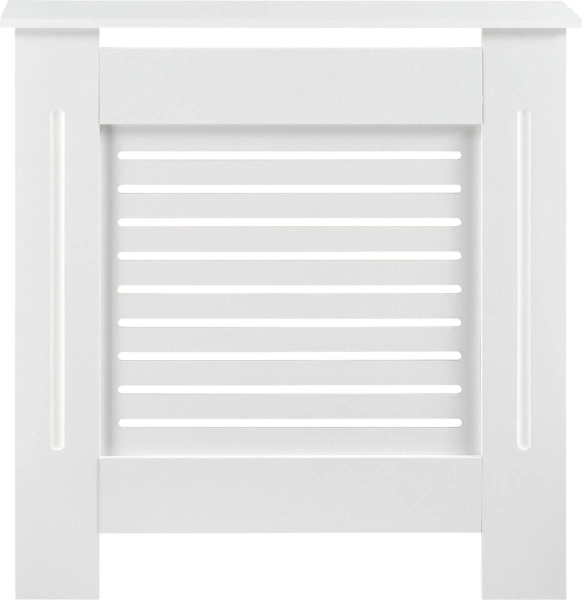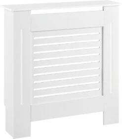 De praktische en decoratieve radiatorafdekking met lamellaire optiek kan snel en eenvoudig aan de muur worden bevestigd. Het verbergt lelijke radiatoren en biedt ook opbergruimte bovenop de radiator.