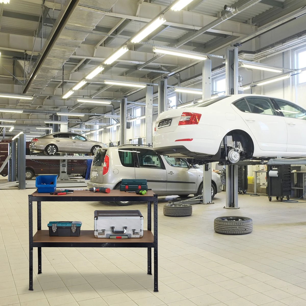 Deze werktafel met 2 etages voelt zich het beste thuis in kelder, garage of werkplaats. De bovenste verdieping doet dan dienst als werkbank, waarop je naar believen kan timmeren, zagen, boren en schroeven. Wat daarbij erg handig is, is de opbergruimte onderaan. Daar kan je gereedschap en ander toebehoren in kwijt. De werkbank is in de hoogte verstelbaar; je past ze dus makkelijk aan jouw individuele eisen aan. De veelzijdige stalen tafel is bovendien niet alleen bruikbaar als werktafel, maar ook als opbergrek of inpaktafel.