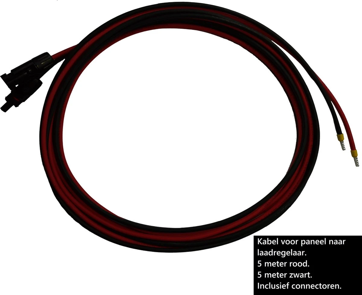 - 5meter kabel zwart (kabel voor zonnepaneel naar laadregelaar)