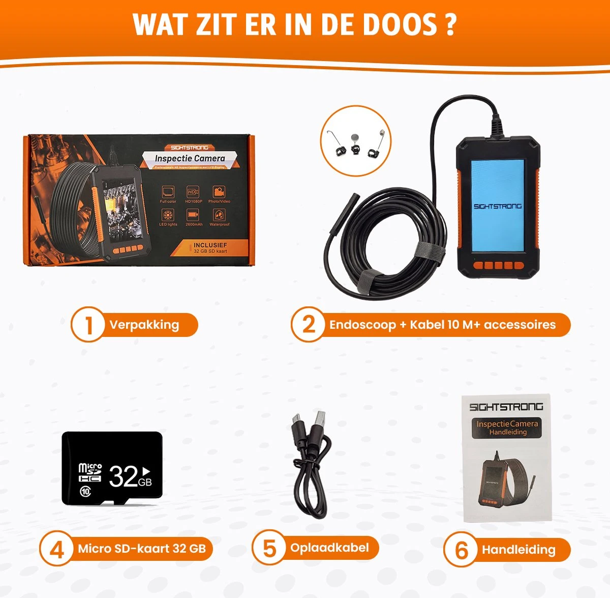 Geen lastig gedoe met het aansluiten op laptops of telefoons maar direct aan de slag met de SightStrong endoscoop! Met de extra meegeleverde 32 GB geheugenkaart is er genoeg ruimte voor het maken van video’s en foto’s. De plug & play service zorgt ervoor dat jij, na het uitpakken en het gereedmaken, direct gebruik kunt maken van de inspectiecamera!