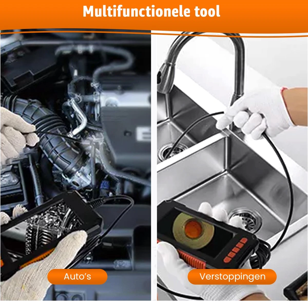 Heb je het vermoeden dat er een lek is in de afvoerpijp van de douche? Moet je bij een lastige plek onder of in de auto zonder allerlei onderdelen los te moeten maken? Met de SightStrong endoscoop kun jij gemakkelijk het probleem opsporen en inspecteren. Met de 5 meter stof- en waterdichte lange kabel kun jij ver genoeg de leidingen in om te kijken waar het probleem zich bevindt. Het probleem gevonden? Dan zie je dit direct op het 4.3-inch beeldscherm met bovendien 1080 HD haarscherpe beeldkwaliteit! Om het zicht nog beter te maken is de SightStrong inspectiecamera voorzien van een dimbaar ledlicht.