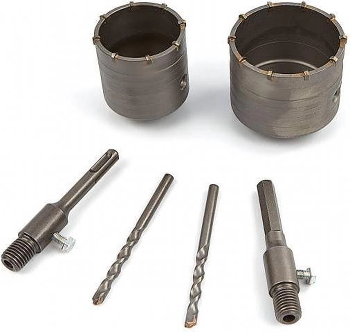 De dozenboor 80 mm en 65 mm SDS plus wordt geleverd inclusief centreerboor met een SDS+ en dus geschikt voor hamerboor met SDS+ aansluiting. De ‘Heavy-Duty’ kernboor met 10 widia punten is ideaal voor het boren van nauwkeurige gaten in steen en licht beton.