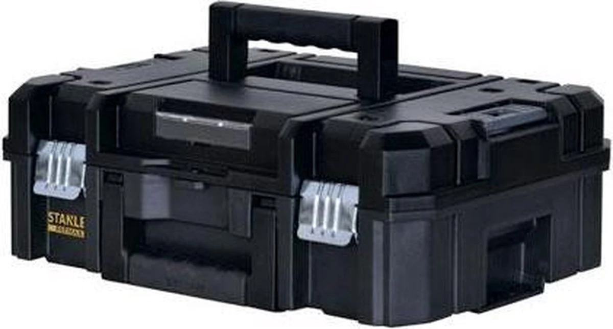 - Een tweede gereedschapskoffer is geschikt voor het opbergen van elektrisch- en handgereedschap en heeft een maximale last tot 30 kg. De afmeting van deze koffer is 34 x 18,5 x 33 cm en de maximale inhoud is tot 14 L. Type: FMST1-71968.