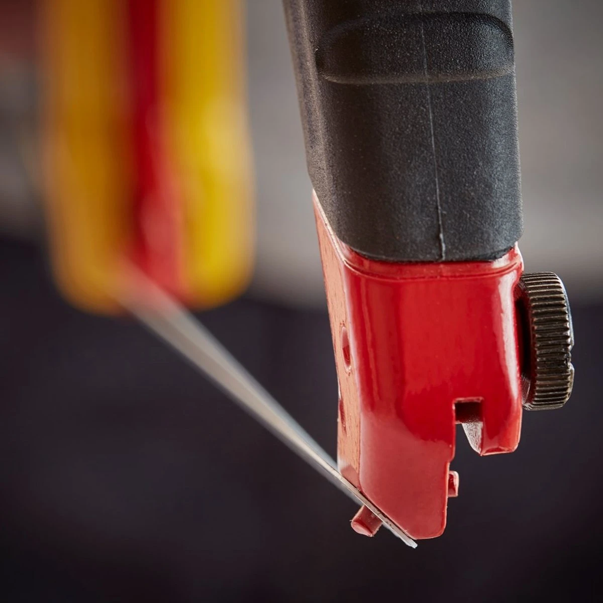 Een unieke metaalzaag doordat je het zaagblad op vijf verschillende manieren aan de metaalzaag kunt bevestigen.