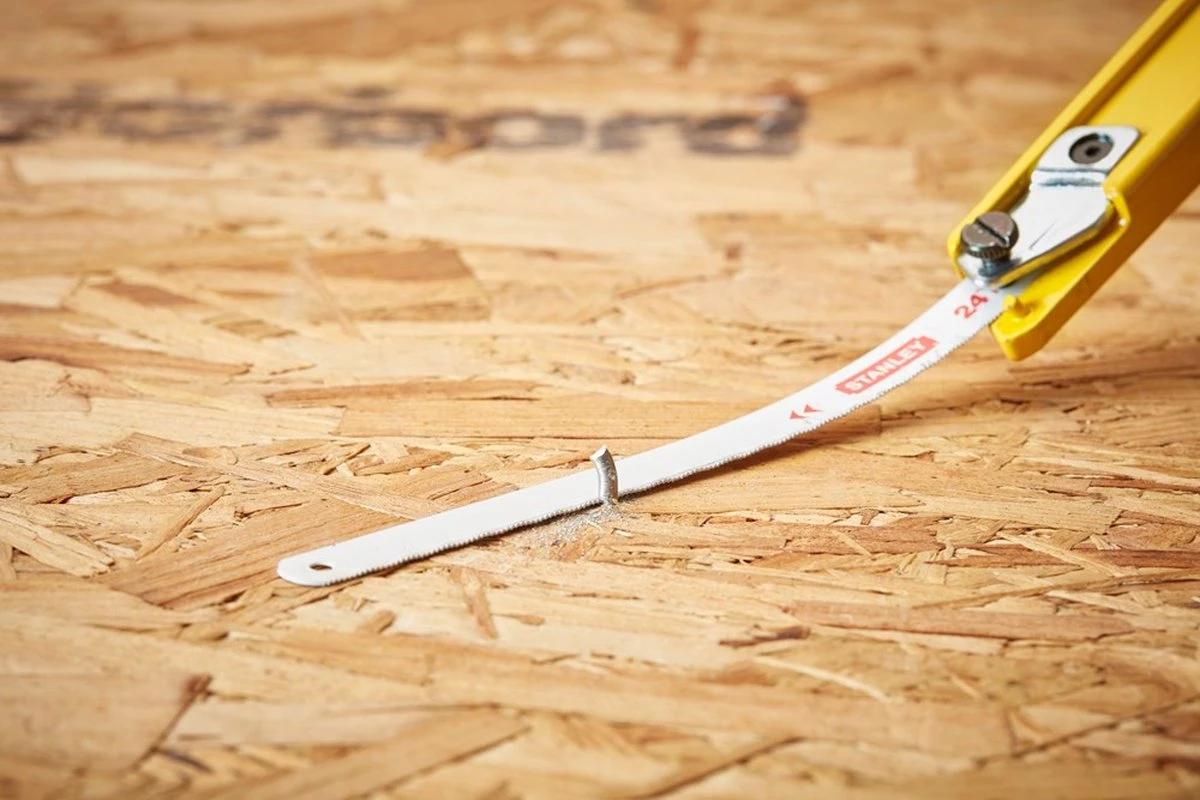 Het zaagblad kan in een positie van 90 of 45 graden worden ingesteld. Wanneer je het metaalzaagblad direct op de gele handgreep plaatst, heb je een compacte handzaag. Zet je het blad voorop het gele of zwarte gedeelte van de zaag dan kun je de metaalzaag gebruiken als schrobzaag.