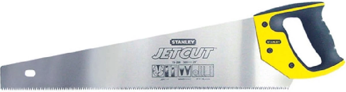 De STANLEY JetCut Handzaag heeft een handgreep van antichoc kunststof en zacht elastomeer voor een betere, comfortabele greep en controle. De HardPoint vertanding maakt dat de zaag niet geslepen hoeft te worden. De agressieve vertanding met drie snijvlakken zorgen voor sneller en gladder zagen. Ideaal voor zacht hout, geplastificeerde spaanplaat en PVC. De handgreep is voorzien van aftekenhoeken voor 45° en 90°.
