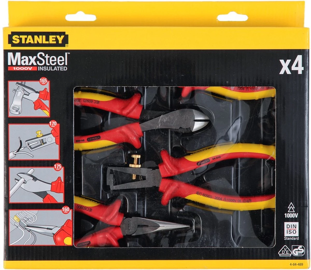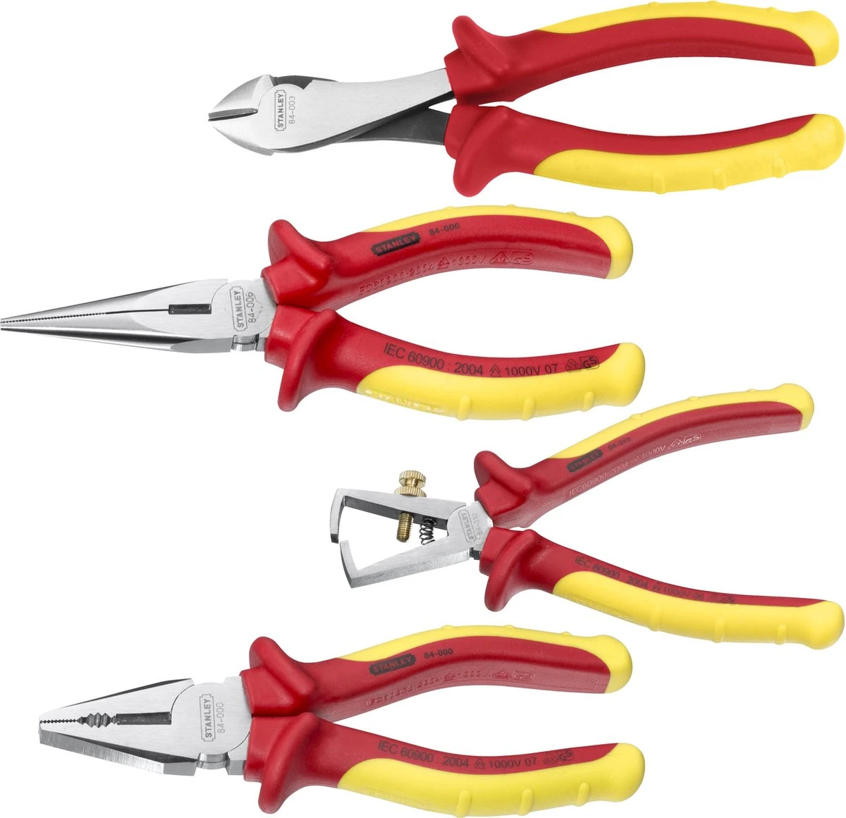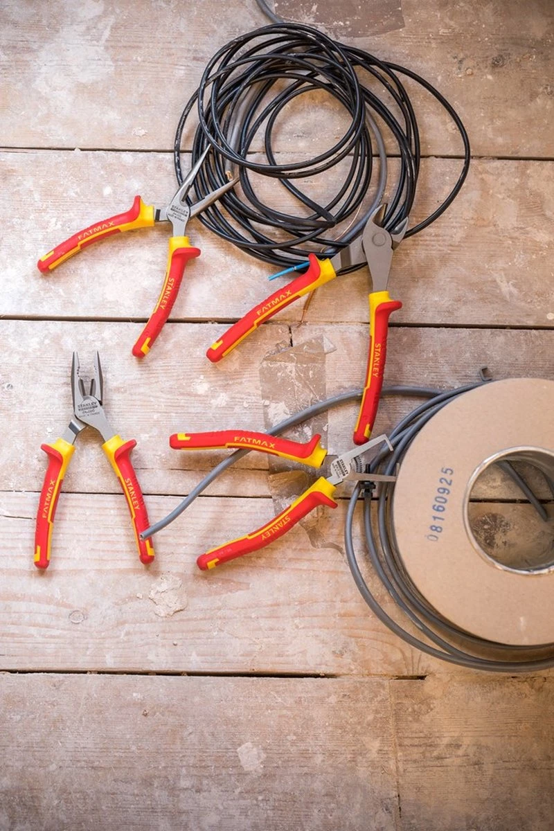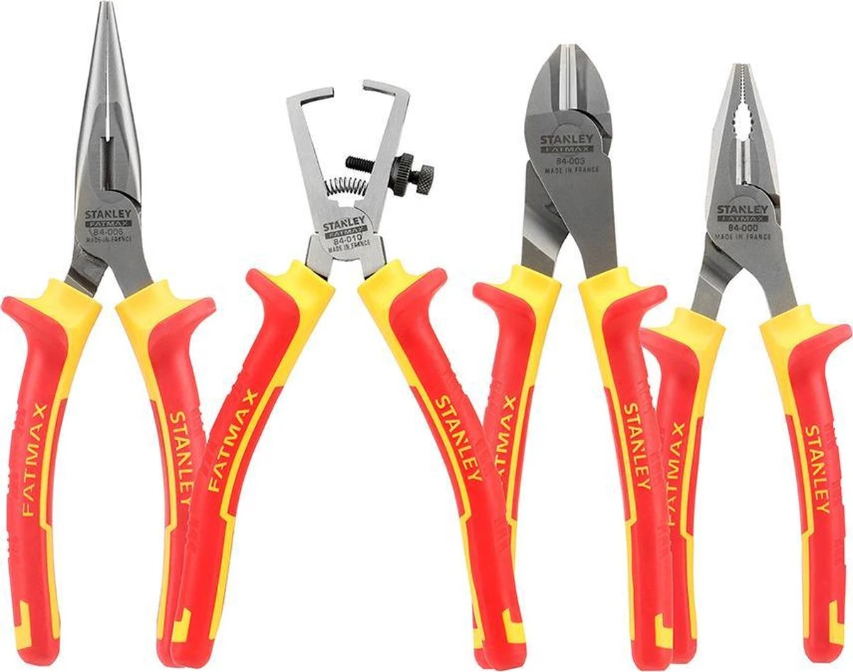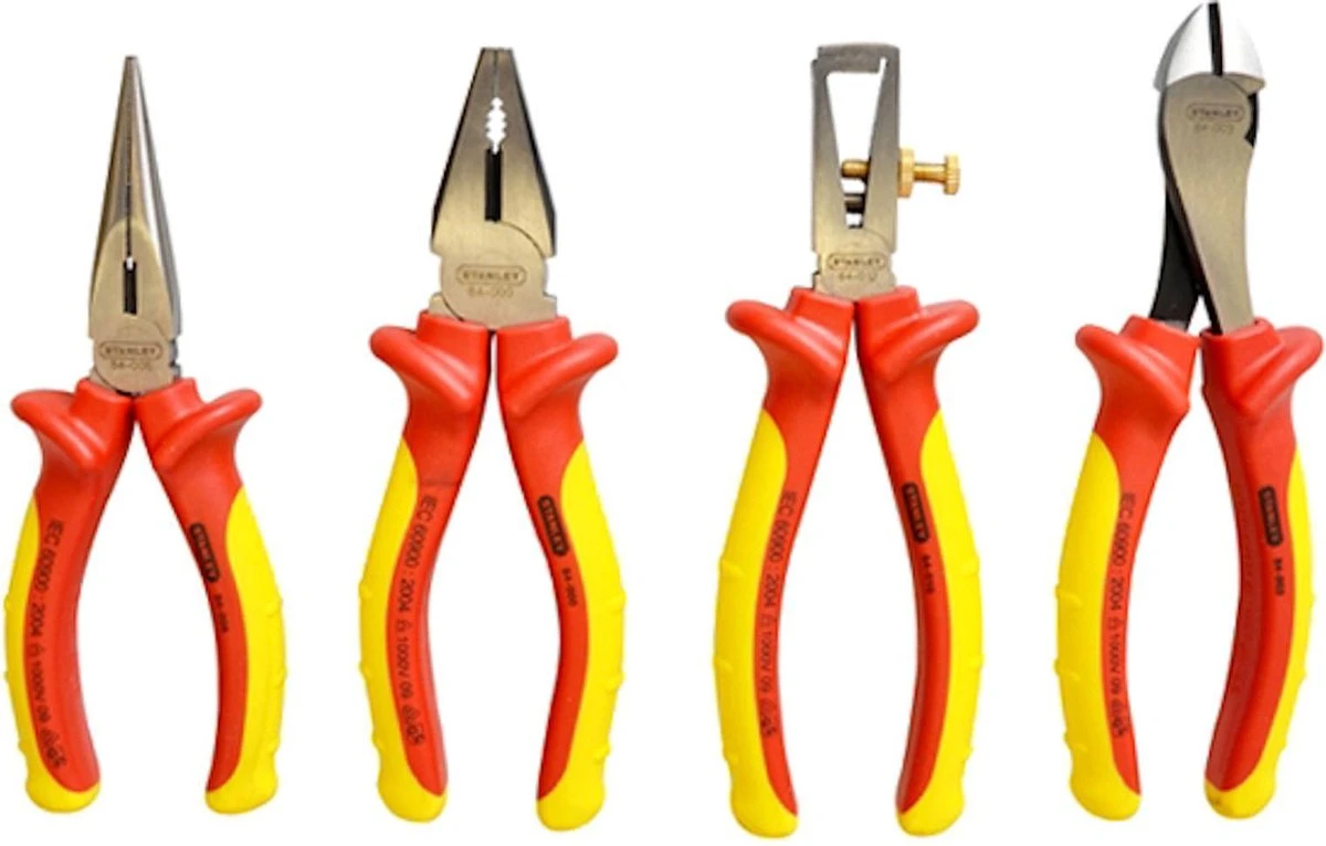 Met de Stanley VDE Tangenset kun je aan de slag in elke omgeving. De tangen zijn bestand tegen schokken en daarmee de ideale set voor elke elektricien. De set bevat een combinatietang, zijsnijtang, telefoontang en striptang. Dit maakt het onder andere mogelijk om kabels te knippen, grijpen, klemmen, buigen en plat te drukken.
