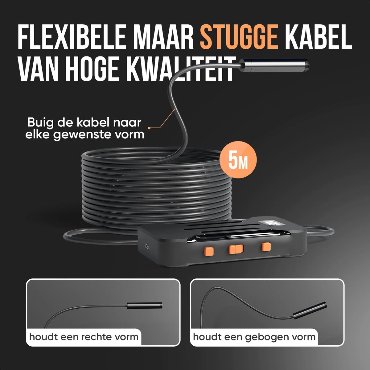 Deze slimme endoscoop heeft een IP67 water en stofbestendige kabel en cameralens. Perfect voor vochtige plaatsen. Snel een kijkje binnen de pijpleiding nemen? Met onze inspectiecamera is het geen probleem.