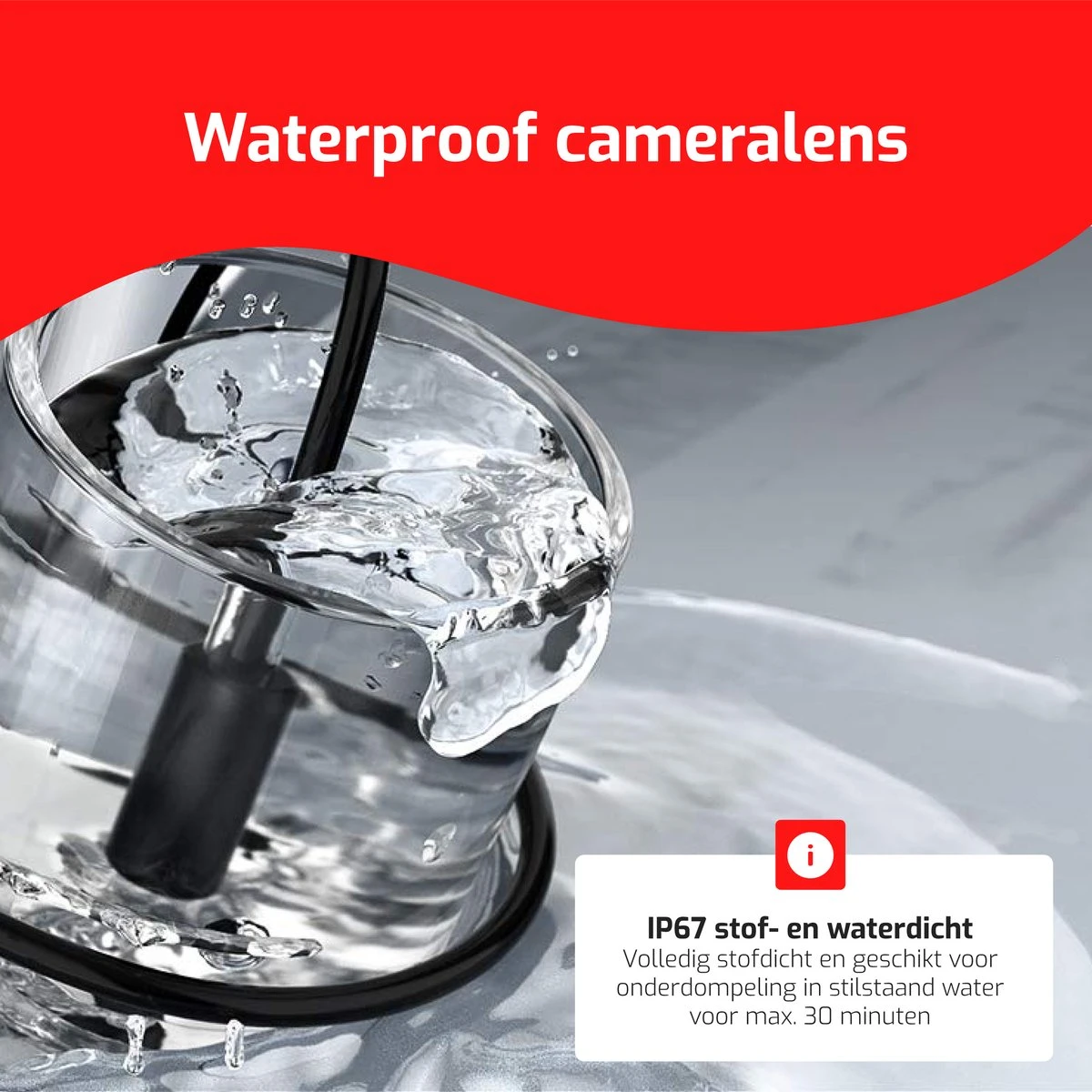 Dankzij deze waterdichtheidsklasse is de inspectiecamera geschikt voor vrijwel iedere werkomgeving. Inspectie van leidingen, rioleringen of andere vochtige omgevingen is dan ook geen enkel probleem.