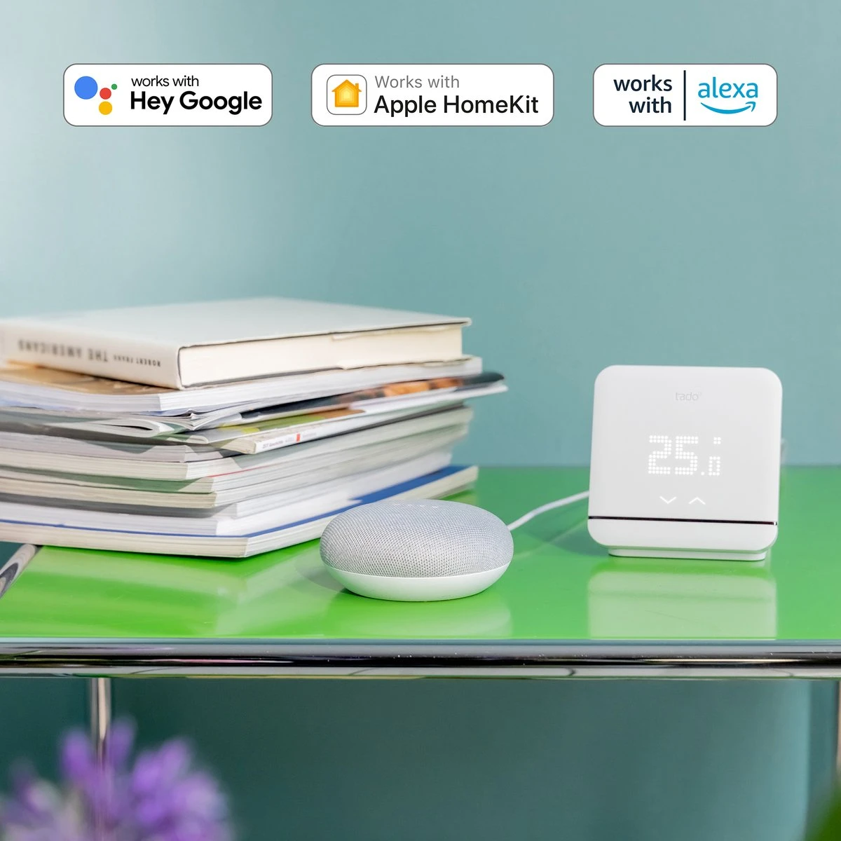 tado° is compatibel met airco’s met een infraroodafstandsbediening met een display en werkt met de Google Assistent, Amazon Alexa en Apple HomeKit. De tado° Slimme Aircobediening V3+ maakt verbinding met je wifi thuis, er is geen extra bedrading nodig. Het kan op een muur worden gemonteerd of op een tafel worden geplaatst.
