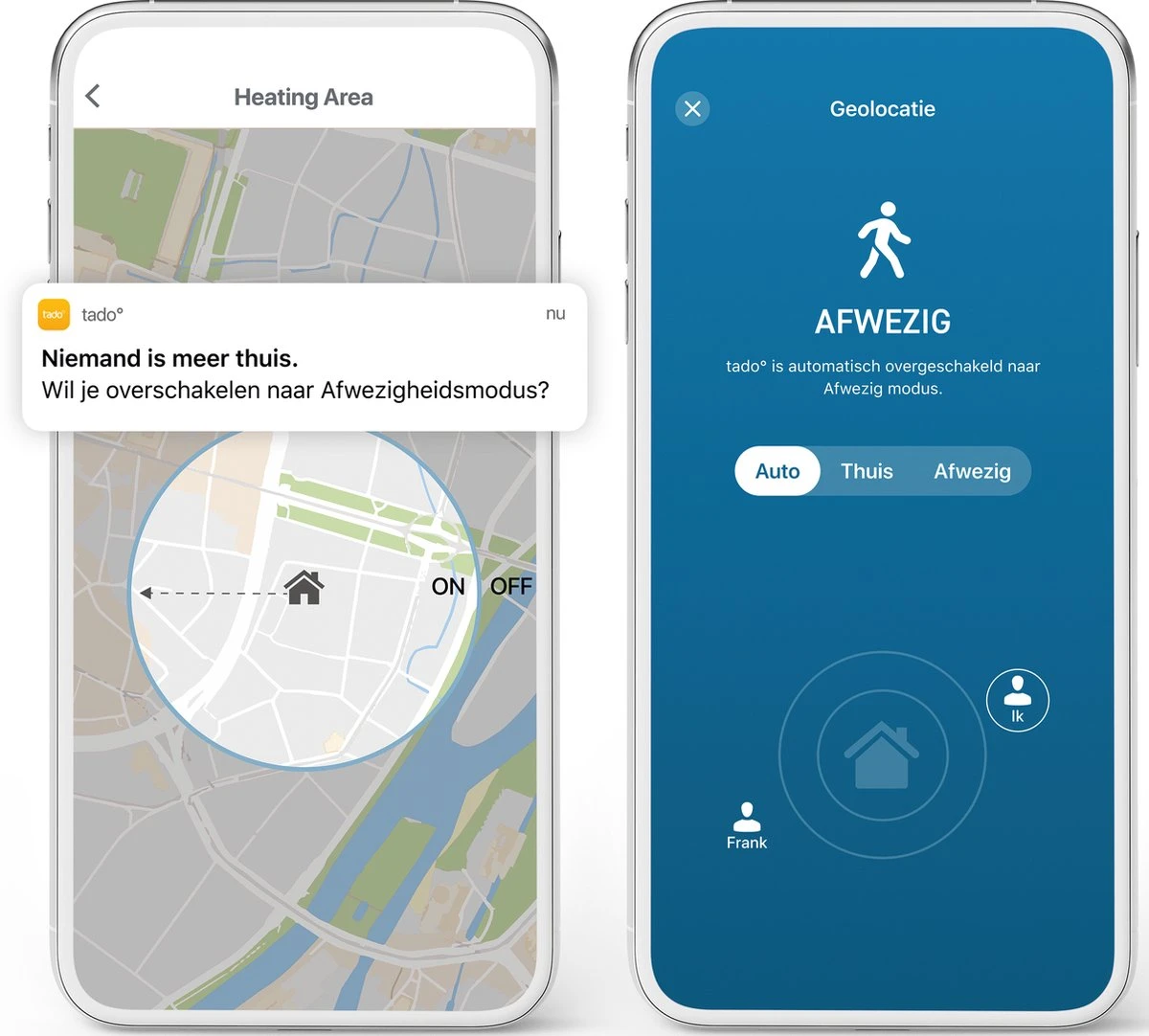 tado° regelt de radiatoren op basis van de locatie van de bewoners: bespaart als niemand thuis is en verwarmt zodra iemand onderweg naar huis is.
