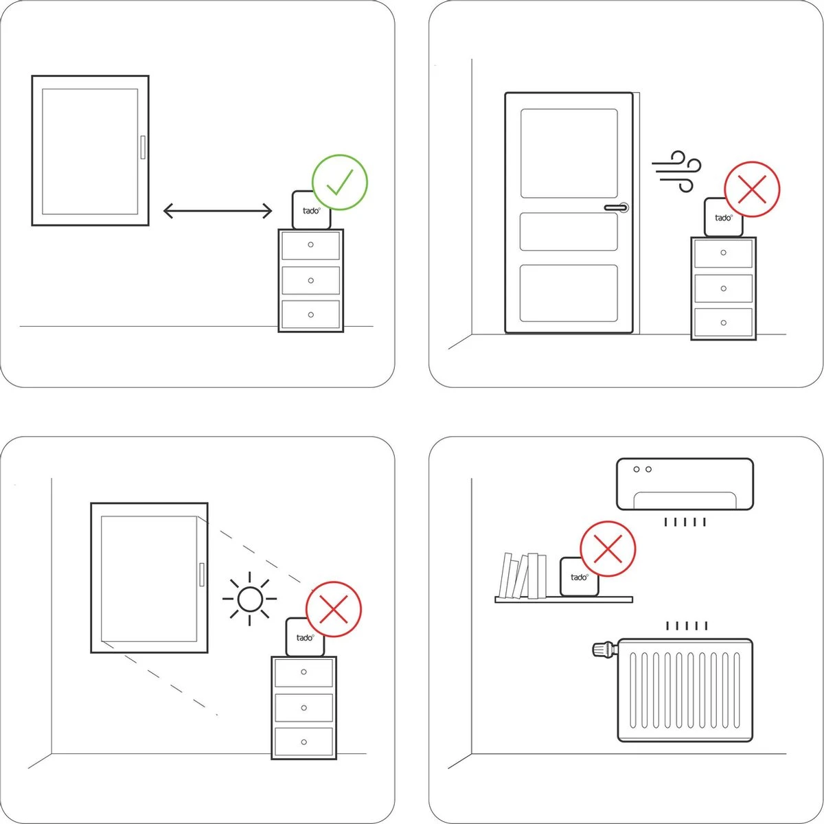 - Plaats de thermostaat niet op een tochtige plek, direct in de buurt van een radiator of in de volle zon.