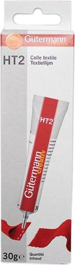 De Gütermann HT2 textiellijm in de kunststof tube van 30 gram. Deze lijm is niet alleen geschikt voor textiel. De Gütermann HT2 textiellijm lijmt naast stoffen ook applicaties, leder en kunststoffen als PVC en nog veel meer.